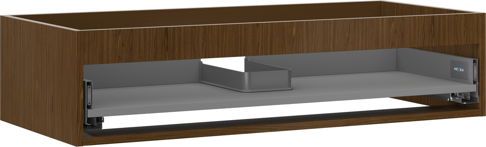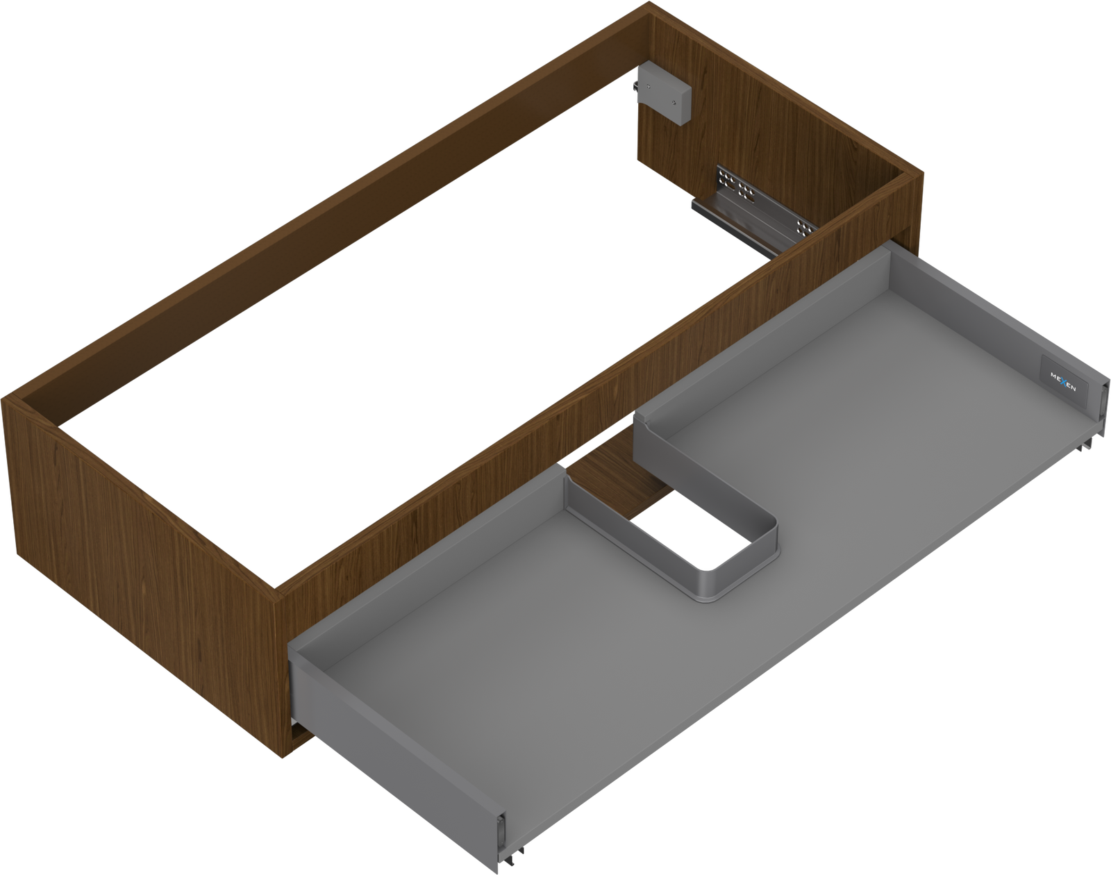 Wycięcie w szufladzie jest zaprojektowane w taki sposób, aby pomieścić syfon, który jest niezbędny w instalacjach umywalkowych. Dzięki temu mebel może być zamontowany w pełni funkcjonalnie, bez konieczności rezygnowania z przestrzeni w szufladzie na rzecz instalacji.