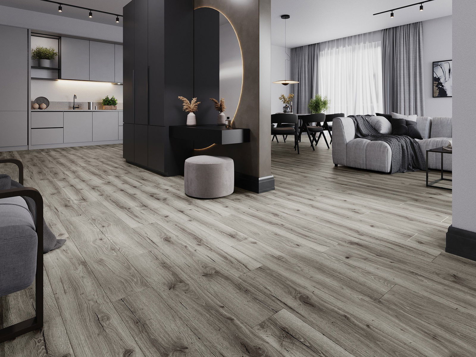Panele posiadają 4-stronną fugę - każdy bok został wyfrezowany w taki sposób, by po ułożeniu powstało łączenie w kształcie litery V. Taki design sprawia, że podłoga nabiera wyraźniejszej struktury, co nadaje jej głębi i estetycznego charakteru. Efekt ten jest szczególnie ceniony w nowoczesnych aranżacjach, gdzie detale podkreślają wyjątkowy wygląd wnętrza.