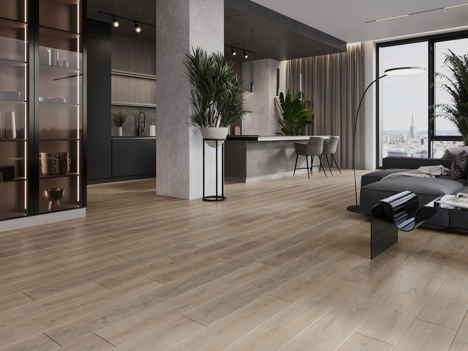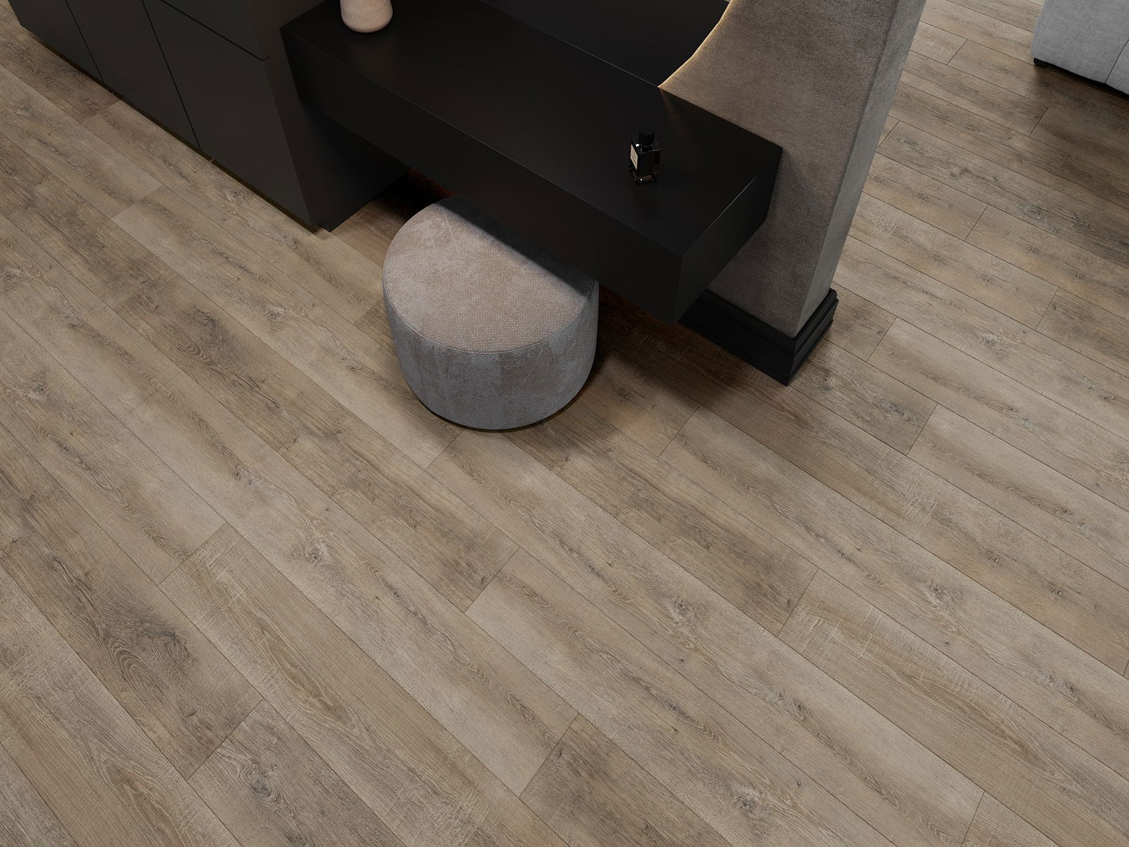 Panele posiadają 4-stronną fugę - każdy bok został wyfrezowany w taki sposób, by po ułożeniu powstało łączenie w kształcie litery V. Taki design sprawia, że podłoga nabiera wyraźniejszej struktury, co nadaje jej głębi i estetycznego charakteru. Efekt ten jest szczególnie ceniony w nowoczesnych aranżacjach, gdzie detale podkreślają wyjątkowy wygląd wnętrza.