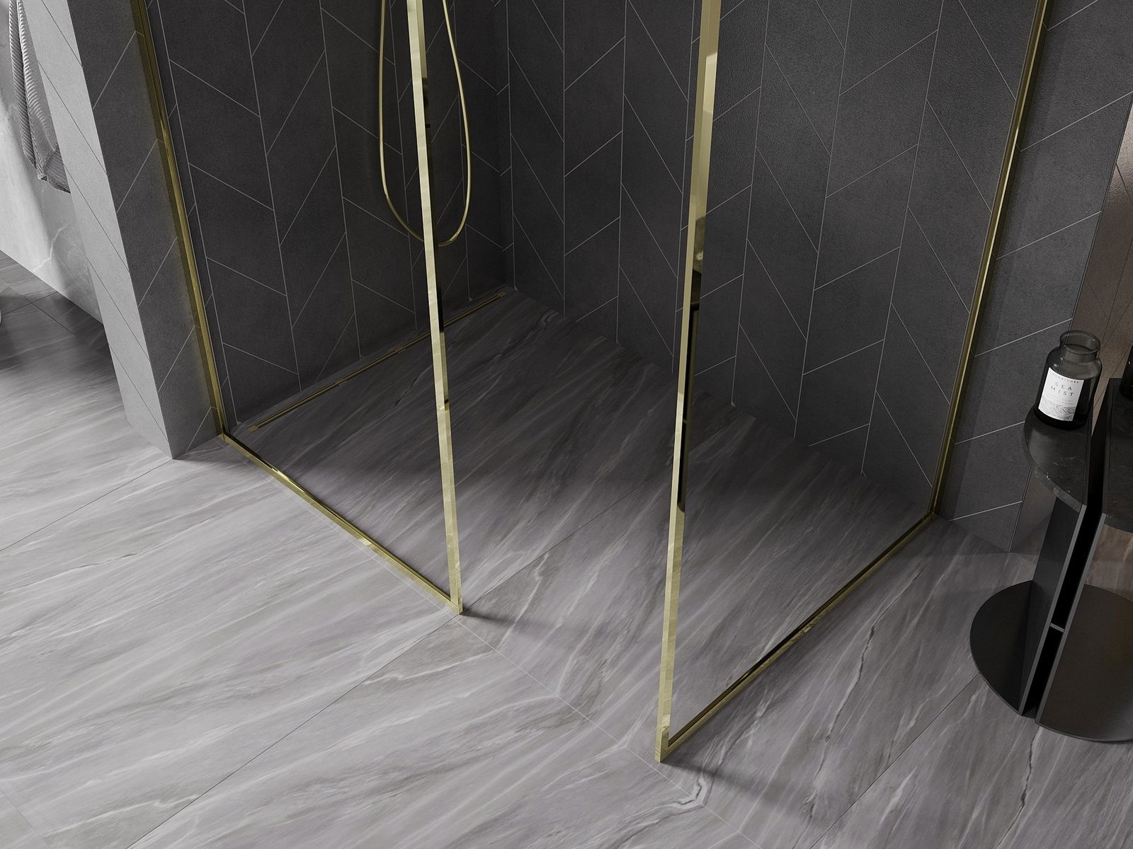 Mexen Kioto-F ścianka prysznicowa Walk-in z ramką 135 x 70 cm, transparent 8 mm, złota - 800-135-202-04-50-070