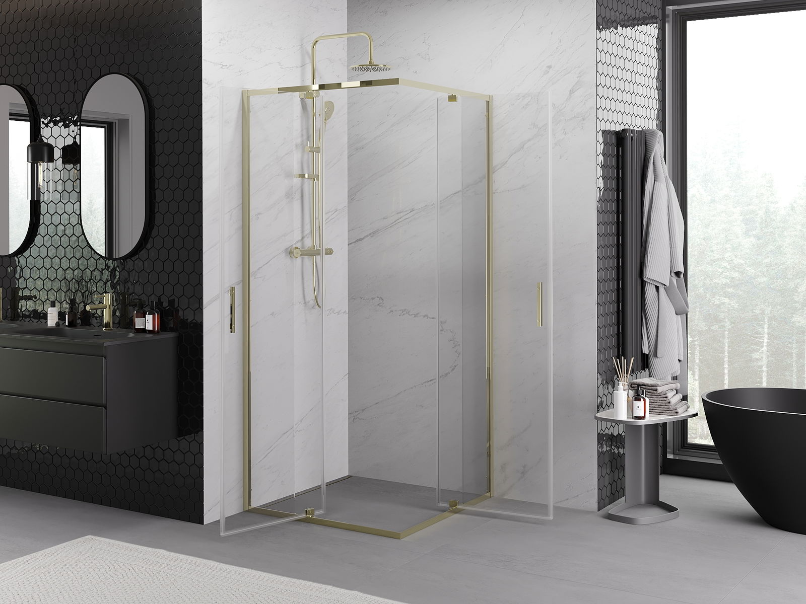 Mexen Exo kabina prysznicowa kwadratowa uchylna 70 x 70 cm, transparent, złota - 8110-070-070-50-00