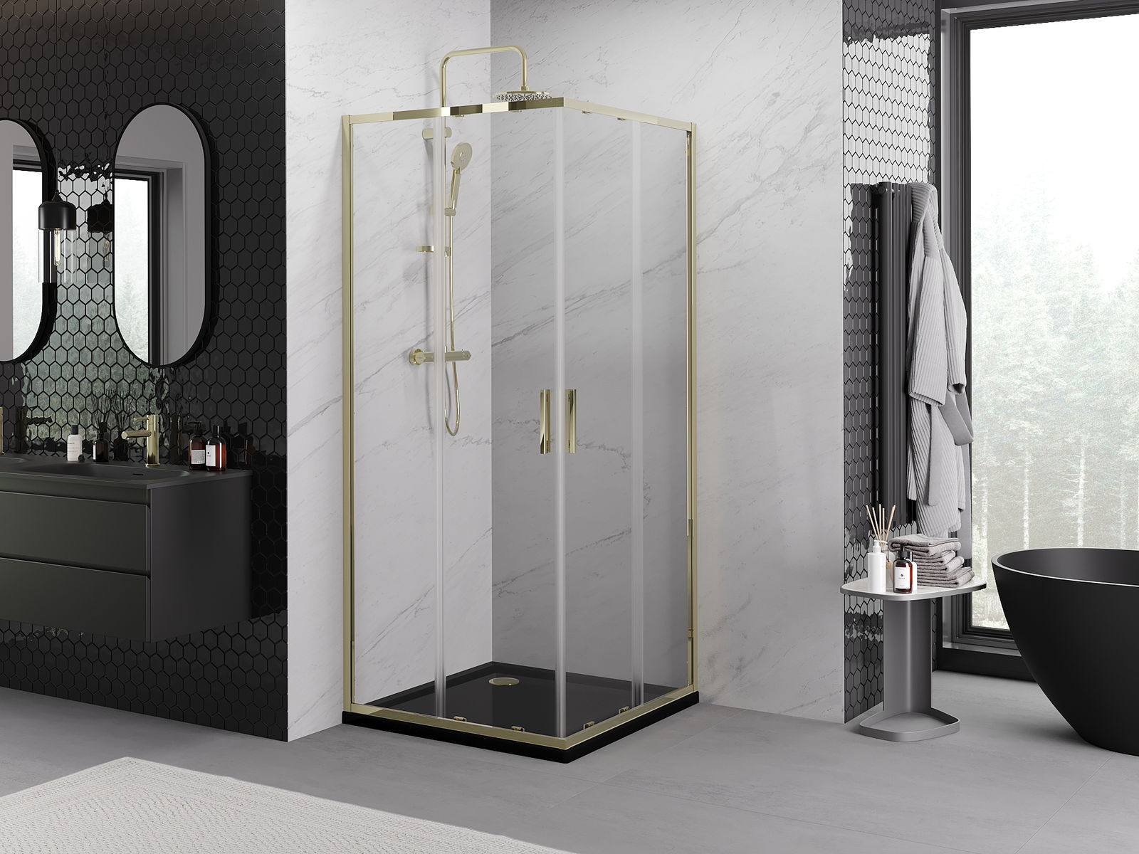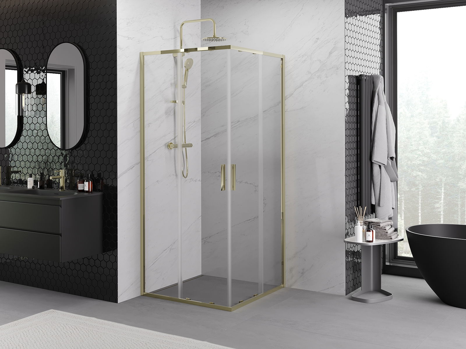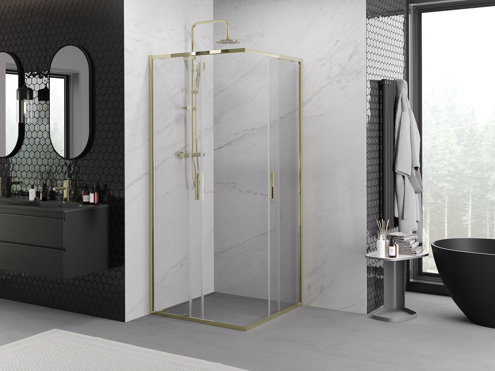 Mexen Exo kabina prysznicowa kwadratowa rozsuwana 70 x 70 cm, transparent, złota - 8111-070-070-50-00
