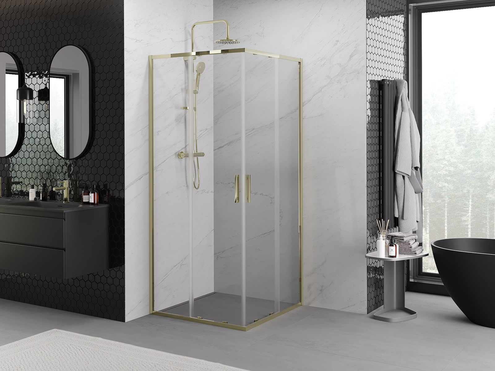 Mexen Exo kabina prysznicowa kwadratowa rozsuwana 80 x 80 cm, transparent, złota - 8111-080-080-50-00