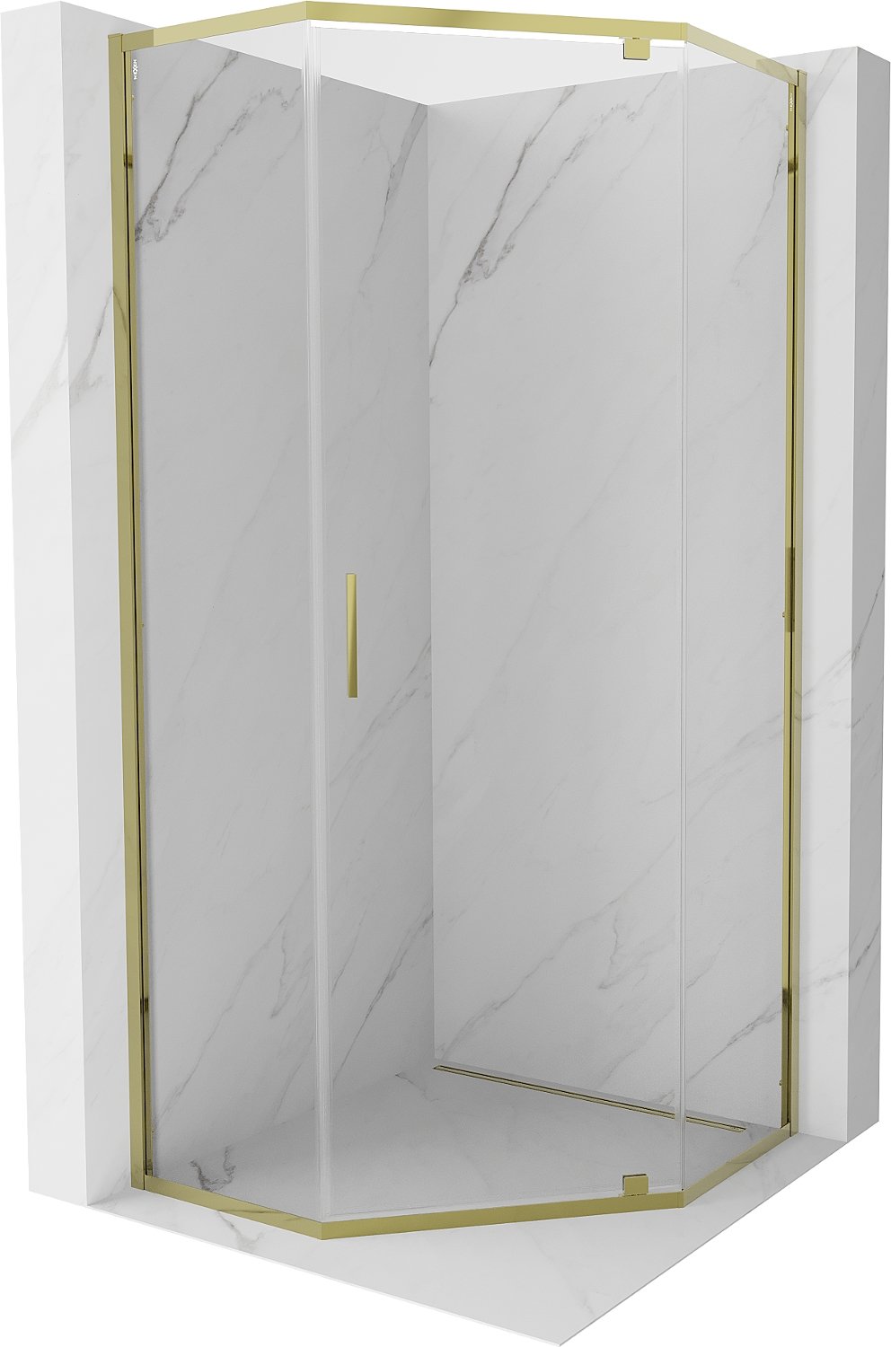 Mexen Exo kabina prysznicowa pięciokątna uchylna 80 x 80 cm, transparent, złota - 812-080-080-50-00