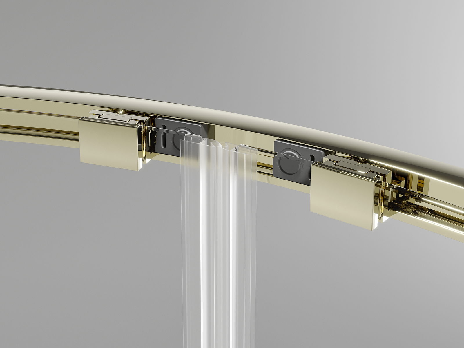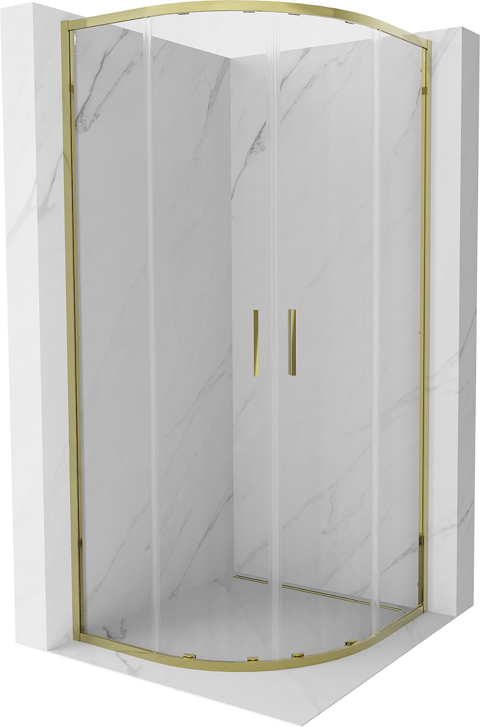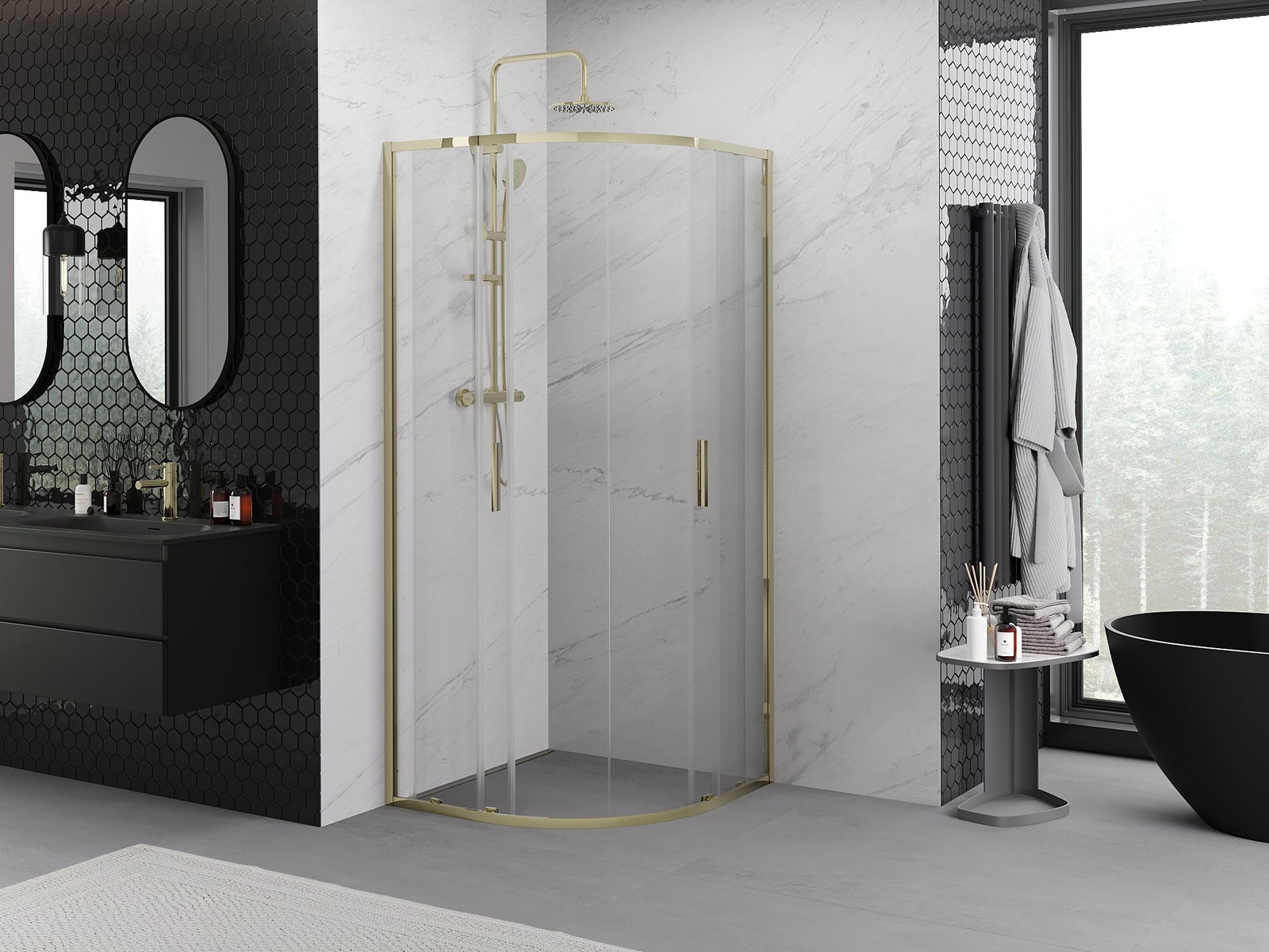 Mexen Exo kabina prysznicowa półokrągła rozsuwana 90 x 90 cm, transparent, złota - 8132-090-090-50-00