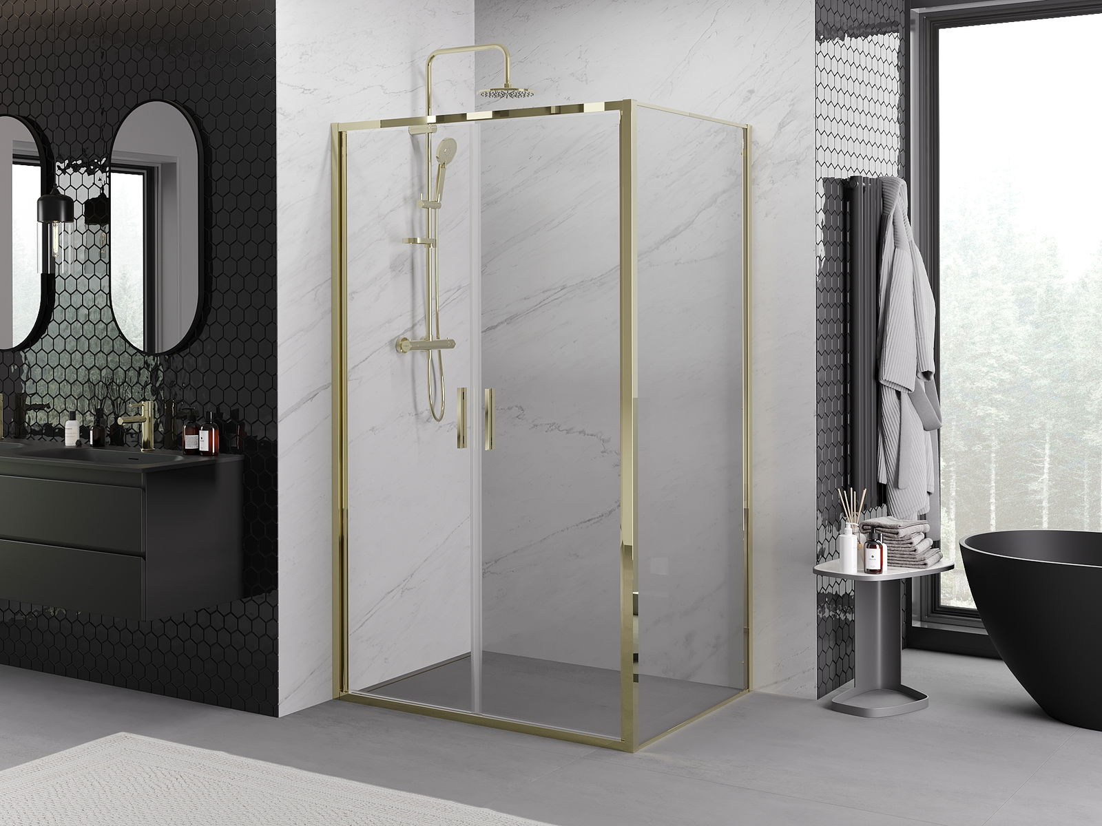 Poręczny i wygodny uchwyt został wykonany z trwałego i odpornego metalu. Modny kształt w połączeniu z wykończeniem dopasowanym do koloru profili nadaje całości nowoczesnego i stylowego wyglądu, podkreślając estetykę każdej łazienki.