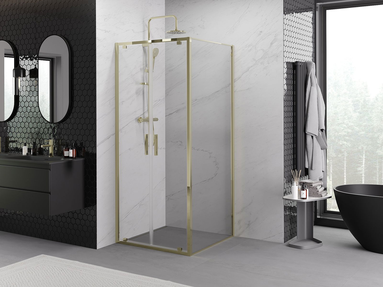 Mexen Exo kabina prysznicowa uchylna 100 x 100 cm, transparent, złota - 8182-100-100-50-00