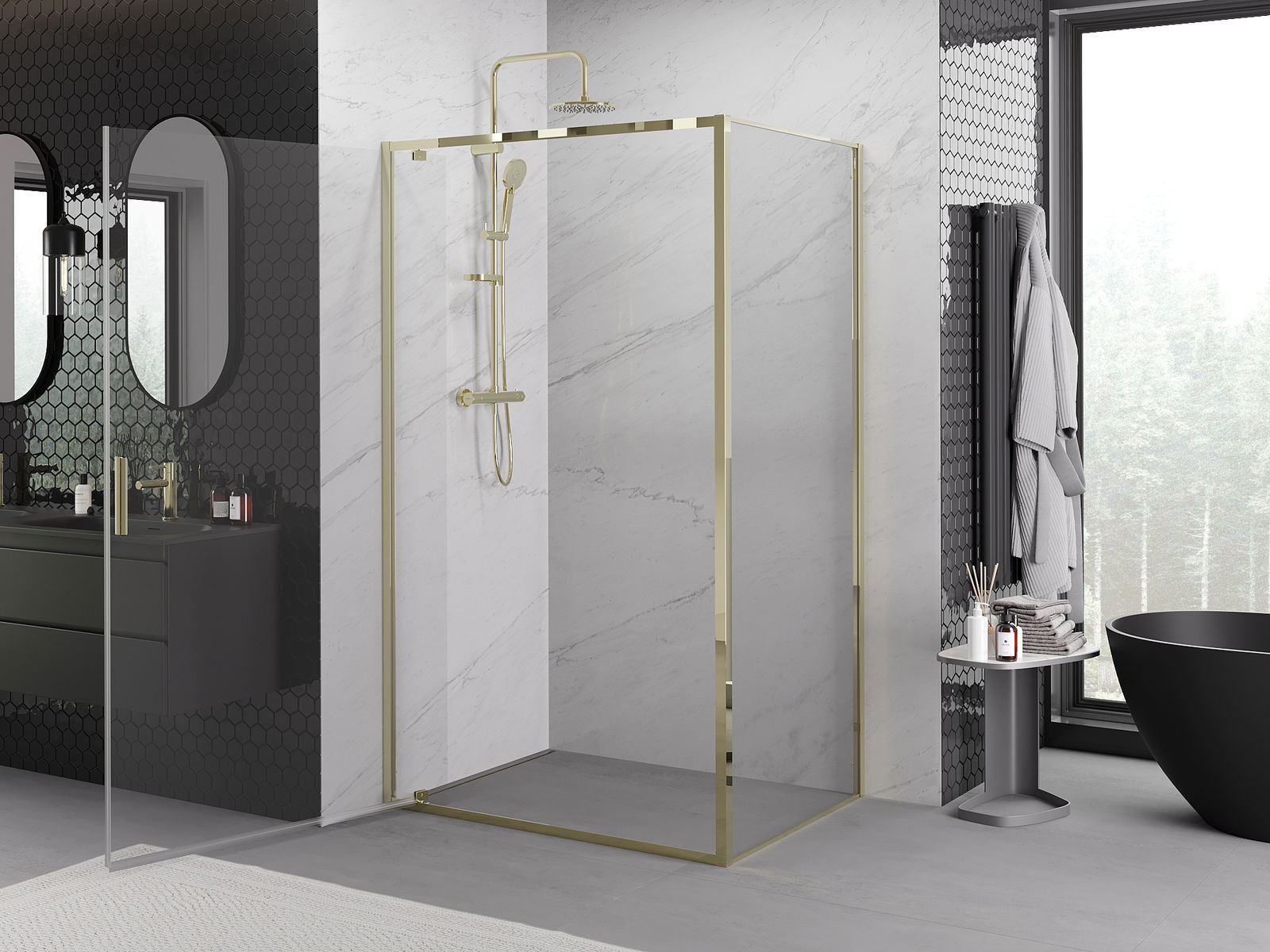 Poręczny i wygodny uchwyt został wykonany z trwałego i odpornego metalu. Modny kształt w połączeniu z wykończeniem dopasowanym do koloru profili nadaje całości nowoczesnego i stylowego wyglądu, podkreślając estetykę każdej łazienki.