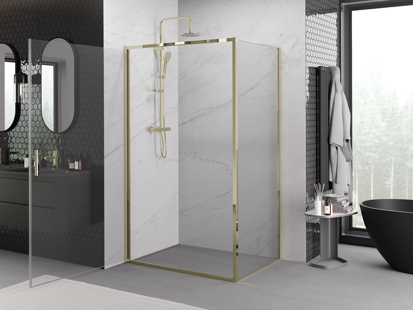 Poręczny i wygodny uchwyt został wykonany z trwałego i odpornego metalu. Modny kształt w połączeniu z wykończeniem dopasowanym do koloru profili nadaje całości nowoczesnego i stylowego wyglądu, podkreślając estetykę każdej łazienki.