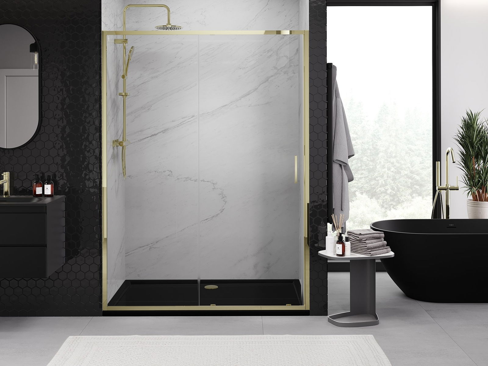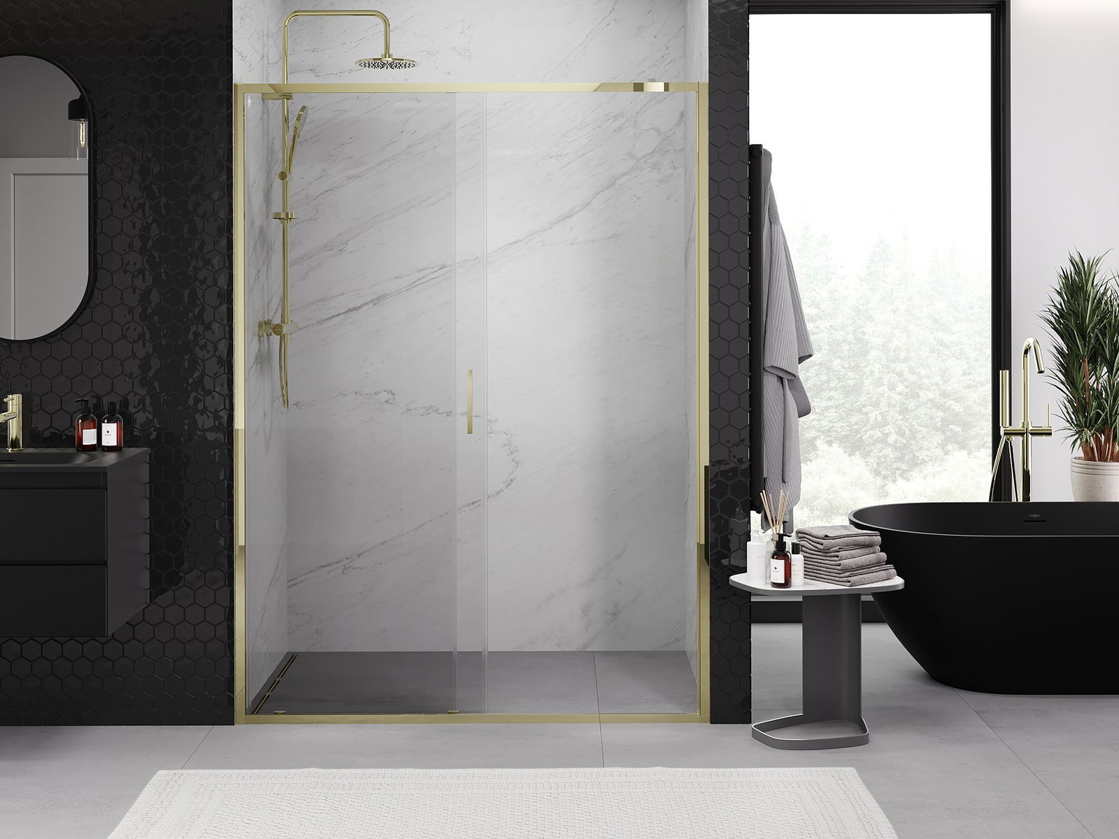 Mexen Exo drzwi prysznicowe rozsuwane 155 cm, transparent, złote - 8151-155-000-50-00