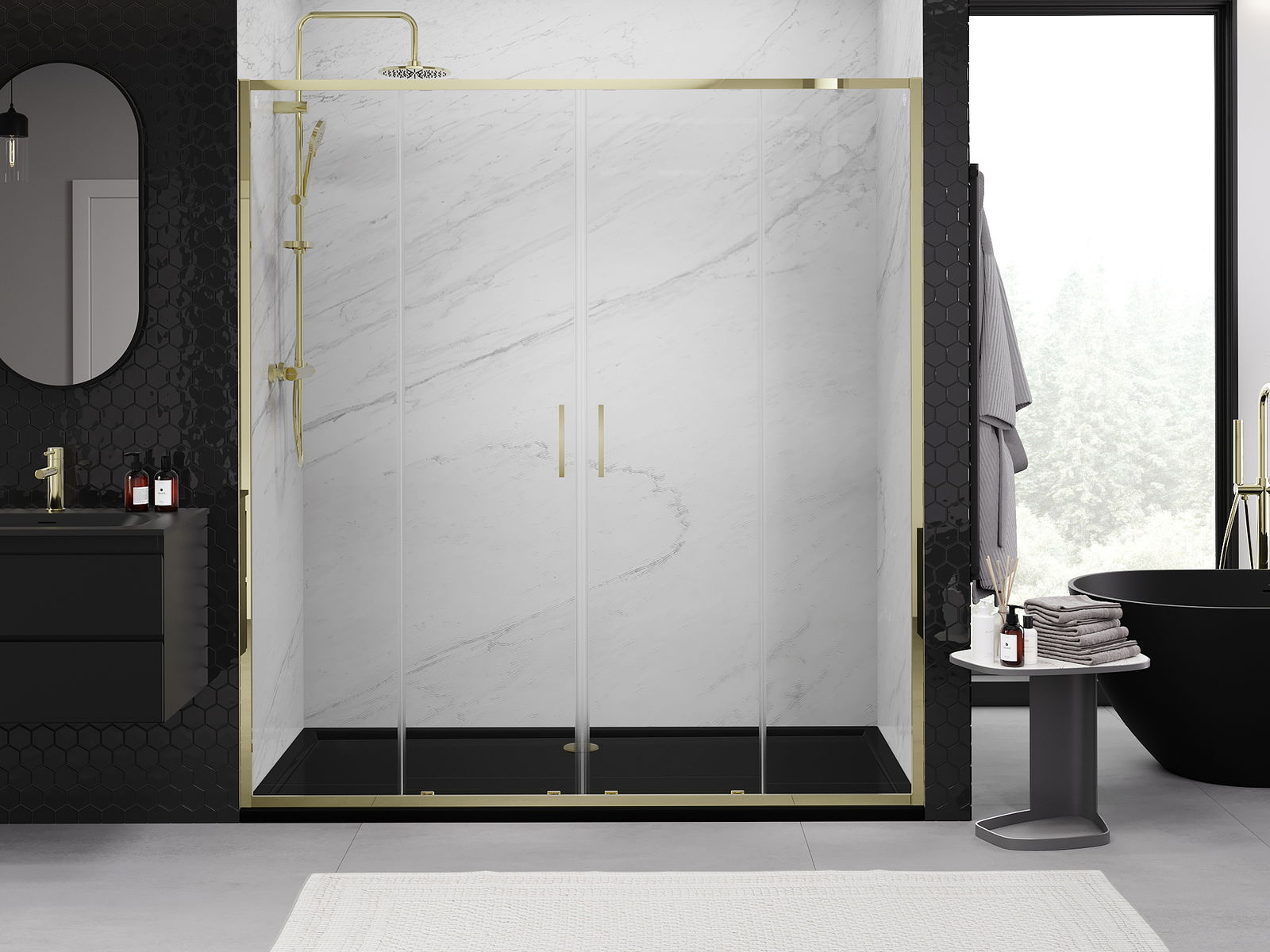 Mexen Exo drzwi prysznicowe podwójne rozsuwane 190 cm, transparent, złote - 8152-190-000-50-00