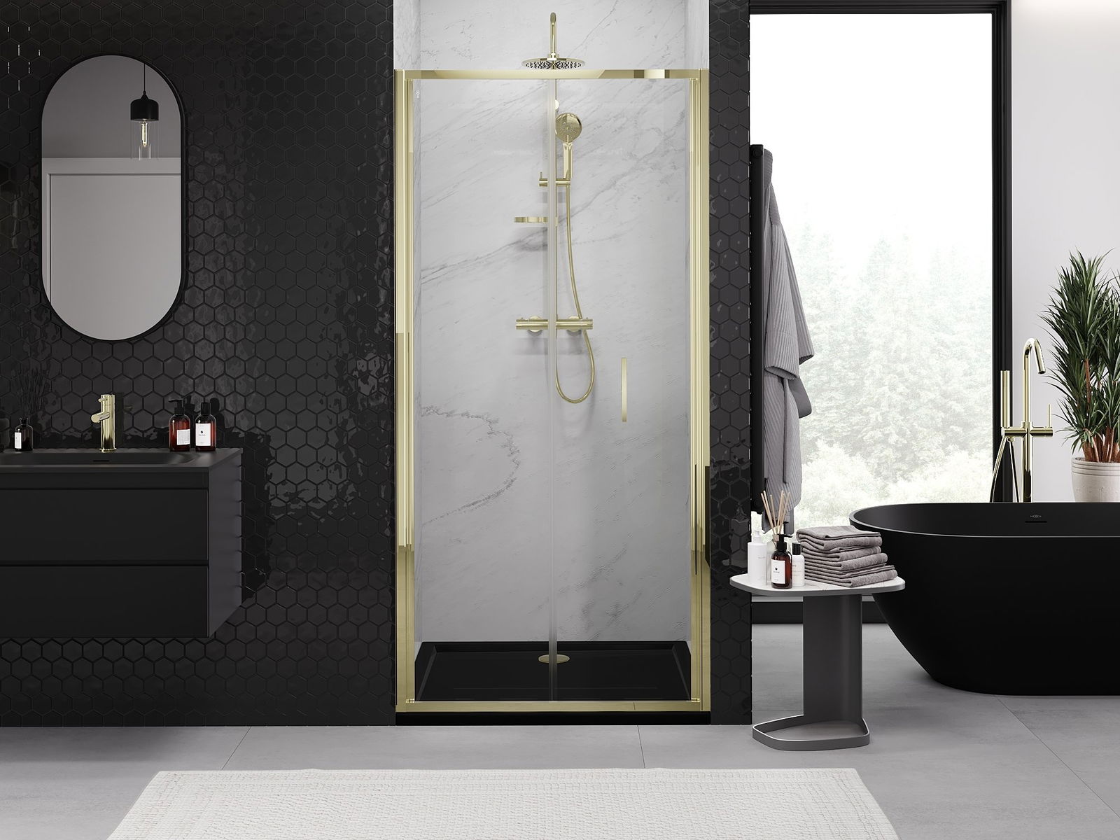 Możliwość składania drzwi, zarówno do zewnątrz, jak i do wewnątrz, pozwala uzyskać więcej przestrzeni podczas niekorzystania z prysznica. Jest to idealne rozwiązanie do mniejszych łazienek, maksymalnie wykorzystujące dostępną powierzchnię.