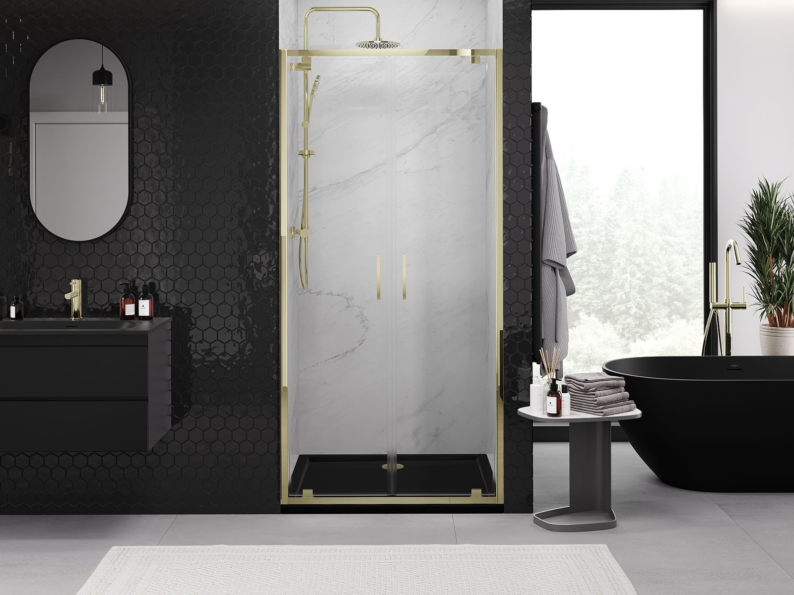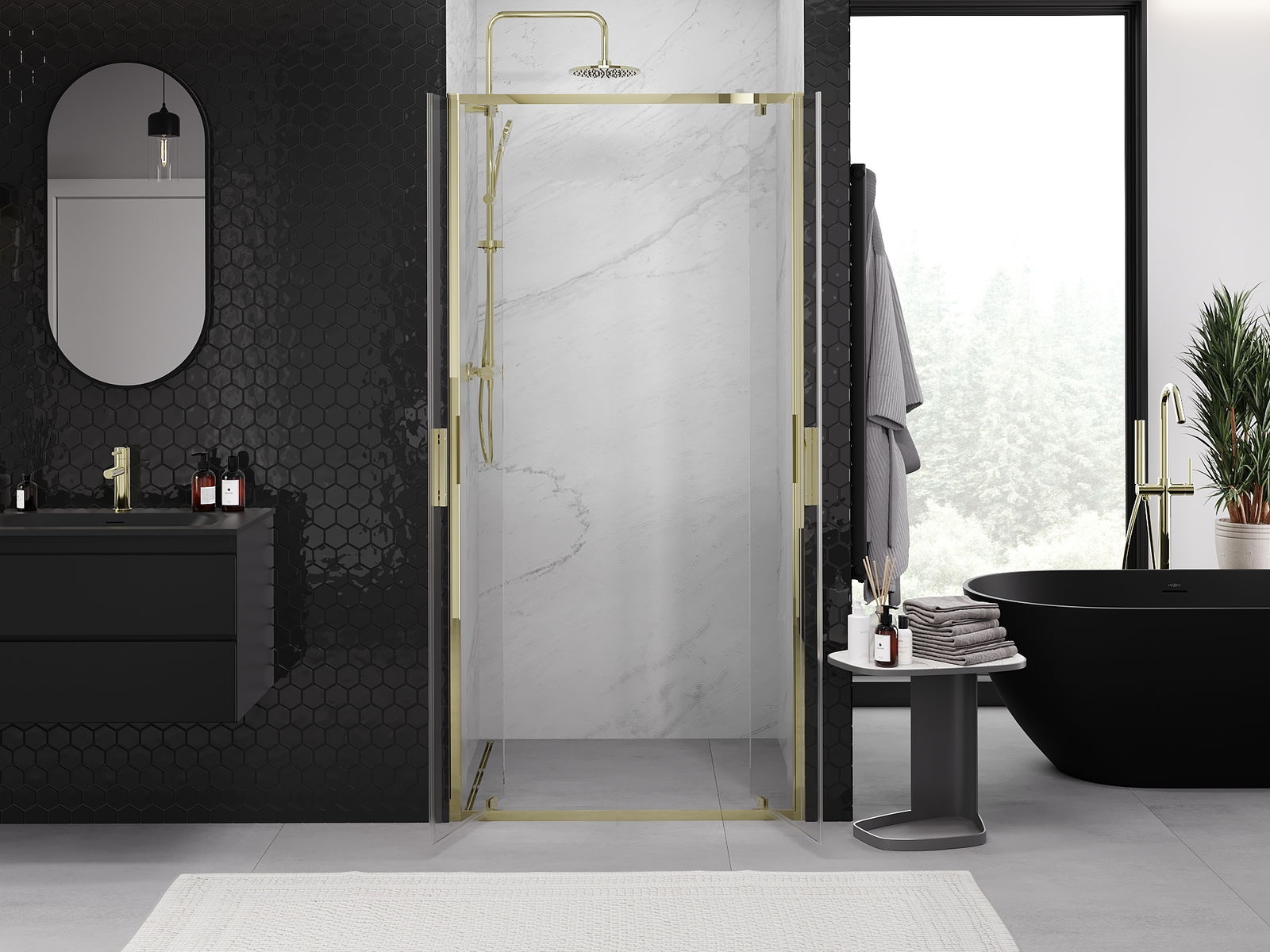 Mexen Exo drzwi prysznicowe podwójne uchylne 70 cm, transparent, złote - 8182-070-000-50-00