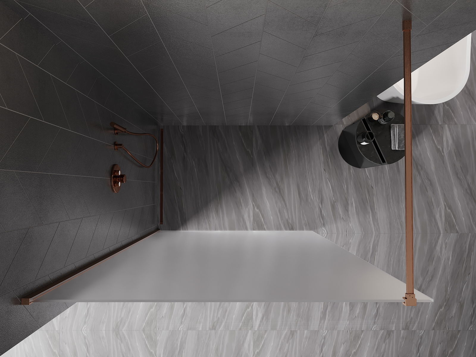 Mexen Kioto-X ścianka prysznicowa Walk-in 160 x 200 cm, szron 10 mm, miedź szczotkowana - 800-160-101-65-30-X