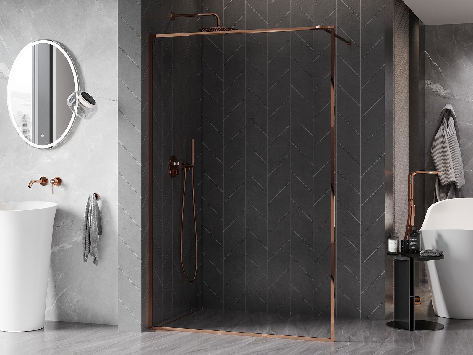 Mexen Kioto-XF ścianka prysznicowa Walk-in z ramką 80 x 202 cm, transparent 10 mm, różowe złoto - 800-080-104-60-00-X