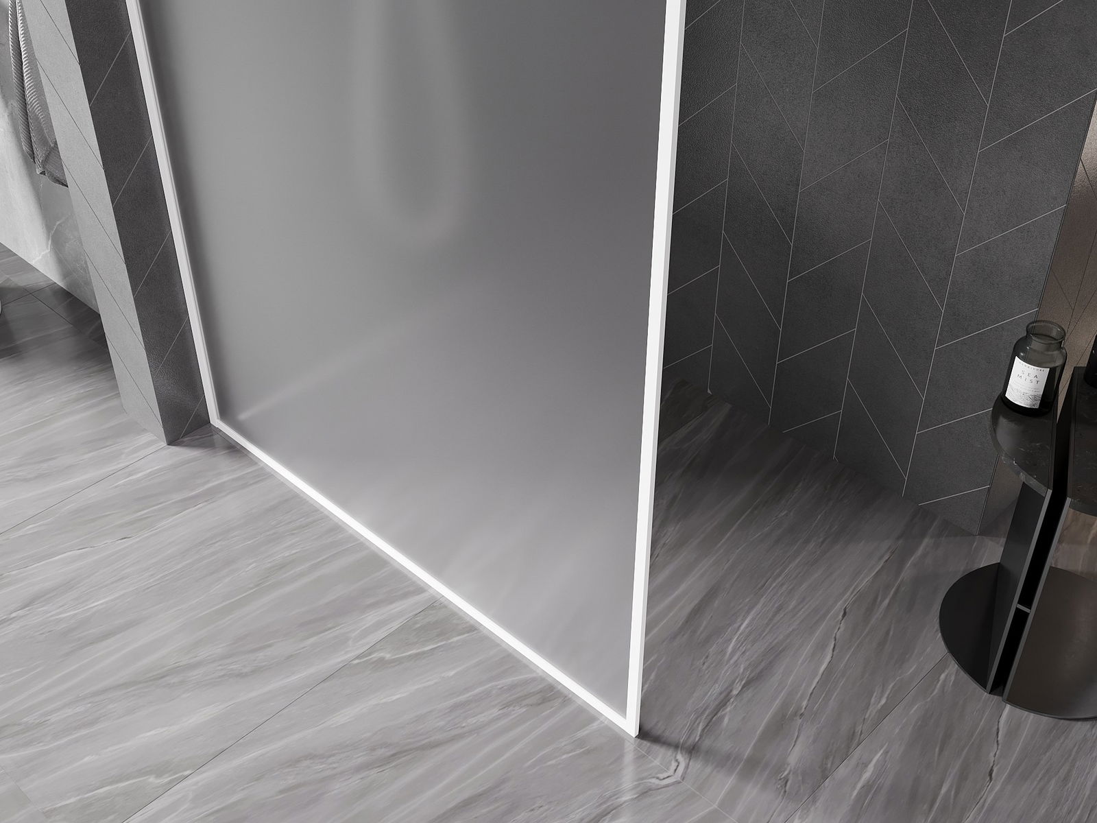 Mexen Kioto-XF ścianka prysznicowa Walk-in z ramką 60 x 202 cm, szron 10 mm, biała - 800-060-104-20-30-X