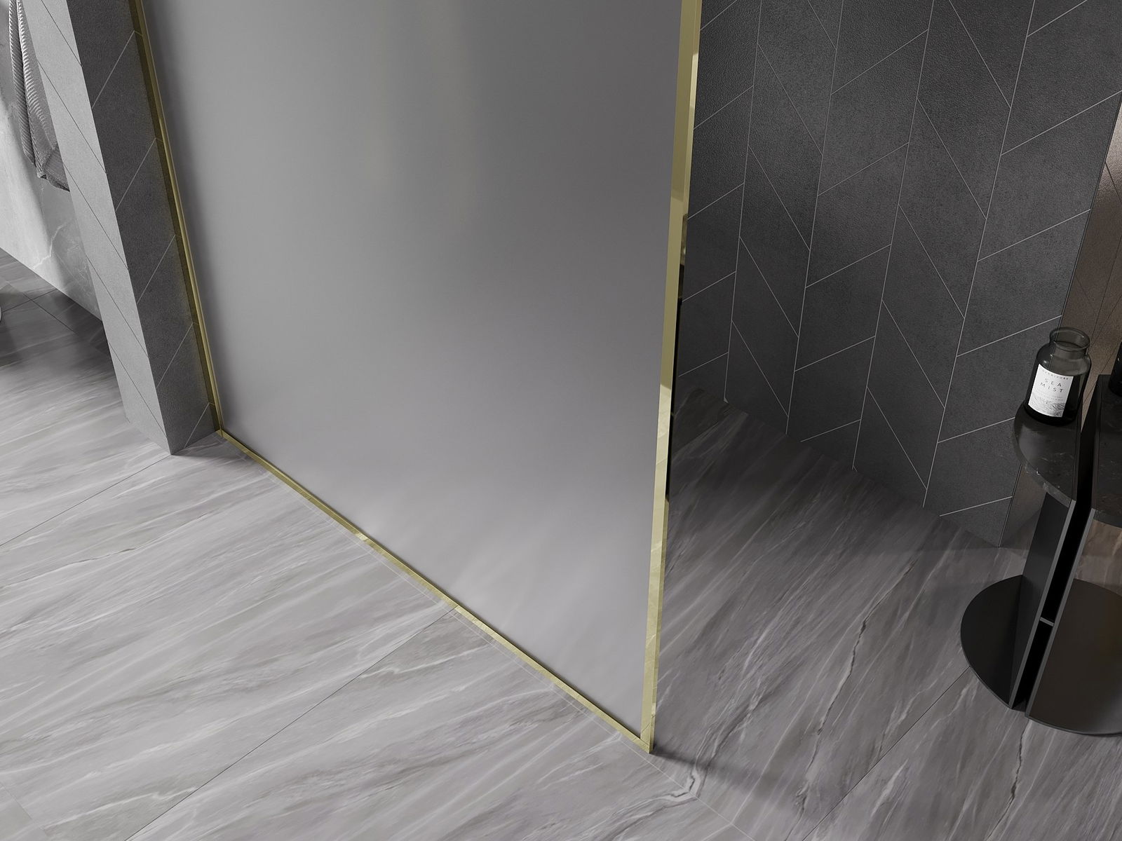 Mexen Kioto-XF ścianka prysznicowa Walk-in z ramką 160 x 202 cm, szron 10 mm, złota - 800-160-104-50-30-X
