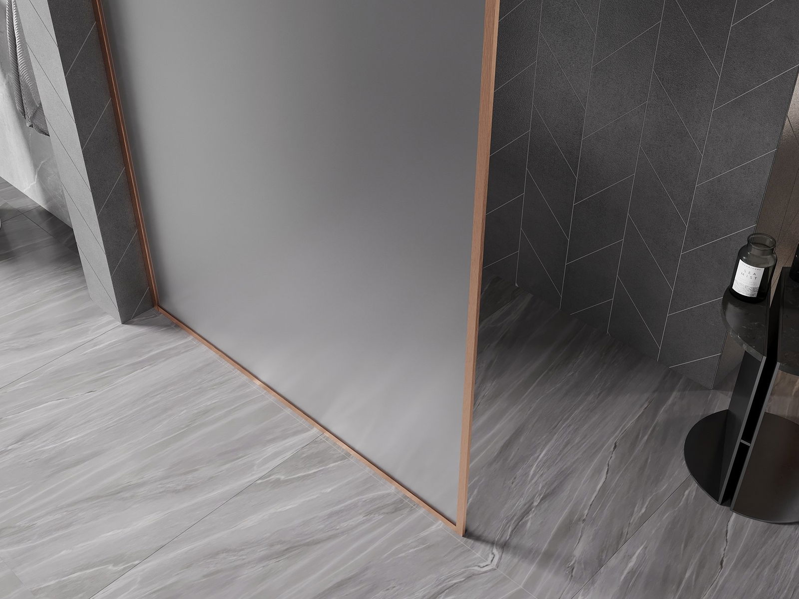 Mexen Kioto-XF ścianka prysznicowa Walk-in z ramką 160 x 202 cm, szron 10 mm, miedź szczotkowana - 800-160-104-65-30-X
