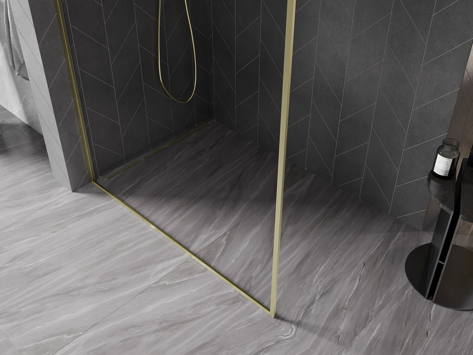 Mexen Kioto-F L ścianka prysznicowa Walk-in z ramką 100 x 202 cm, transparent 8 mm, złota szczotkowana - 800-100-174-55-00