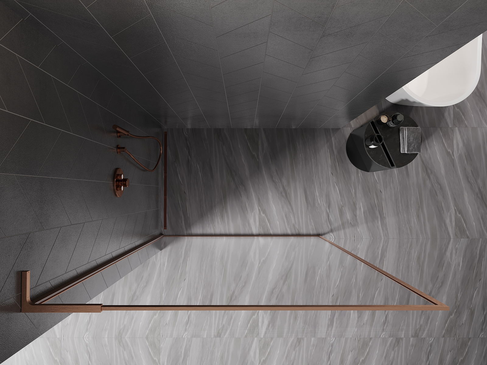 Mexen Kioto-F L ścianka prysznicowa Walk-in z ramką 85 x 202 cm, transparent 8 mm, miedź szczotkowana - 800-085-174-65-00