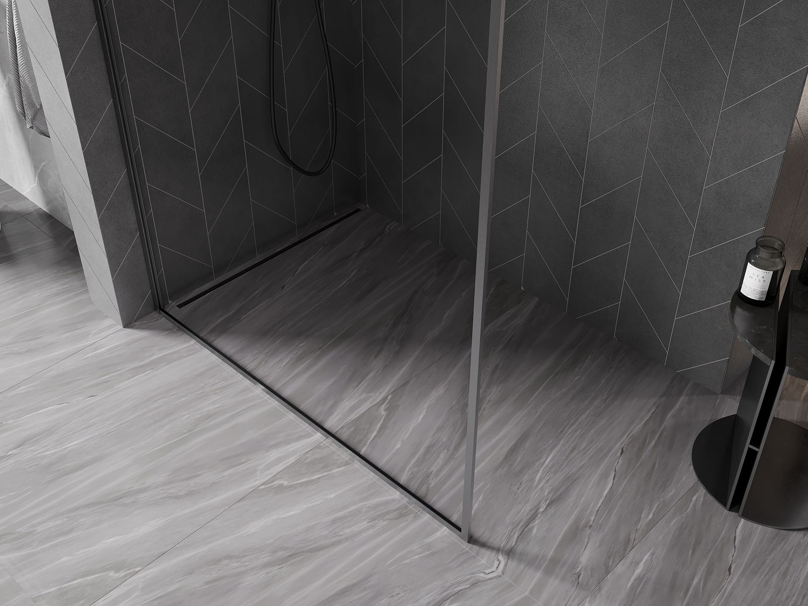 Mexen Kioto-F L ścianka prysznicowa Walk-in z ramką 55 x 202 cm, transparent 8 mm, gun gray szczotkowany - 800-055-174-66-00