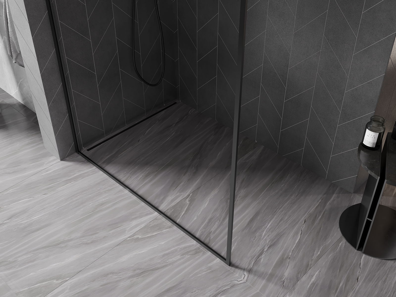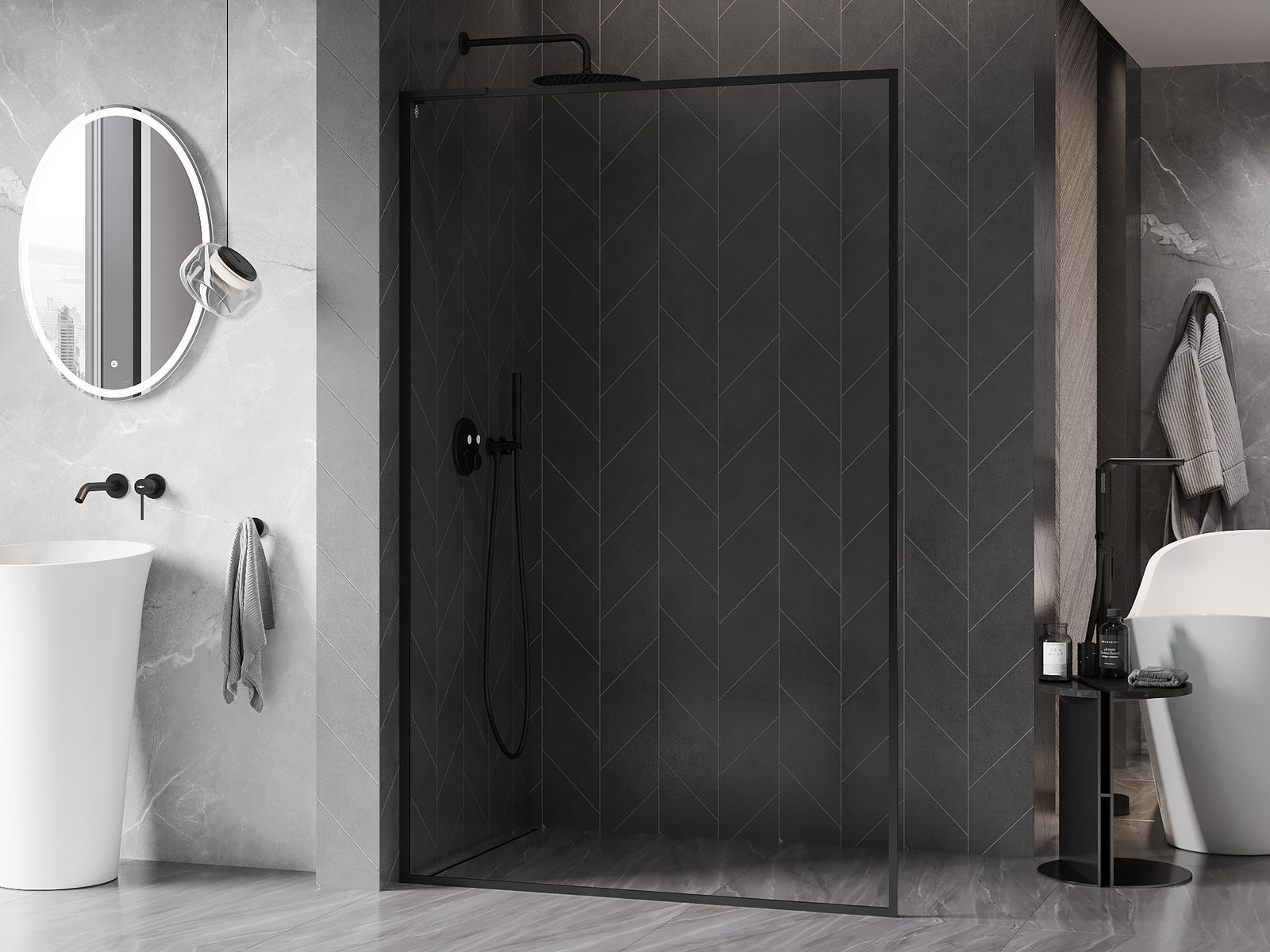 Mexen Kioto-F L ścianka prysznicowa Walk-in z ramką 90 x 202 cm, transparent 8 mm, czarna - 800-090-174-70-00