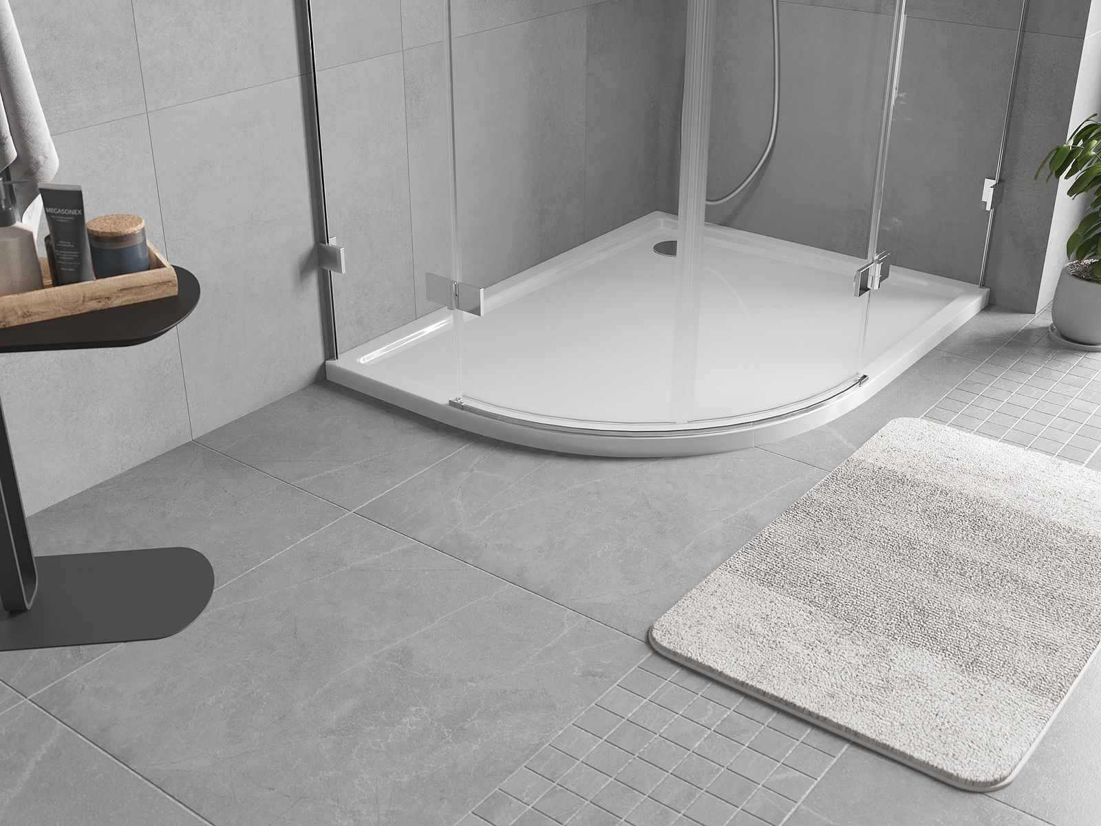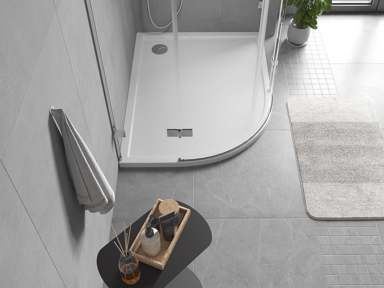 Brodzik został zaprojektowany w taki sposób, by woda mogła swobodnie spływać w kierunku odpływu. Zapewnia szybkie i efektywne odprowadzanie wody z powierzchni brodzika, zapobiegając powstawianiu kałuż i zalewaniu łazienki.