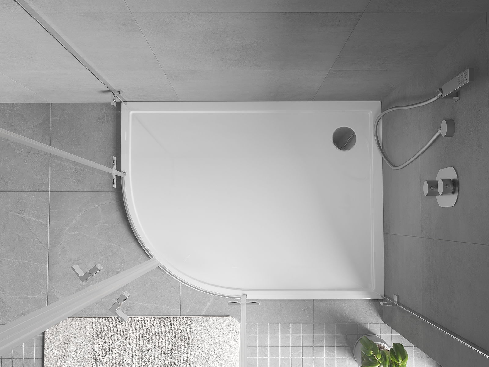Mexen Flow brodzik półokrągły asymetryczny slim prawy 80 x 90 cm, biały połysk - 46Q108090R