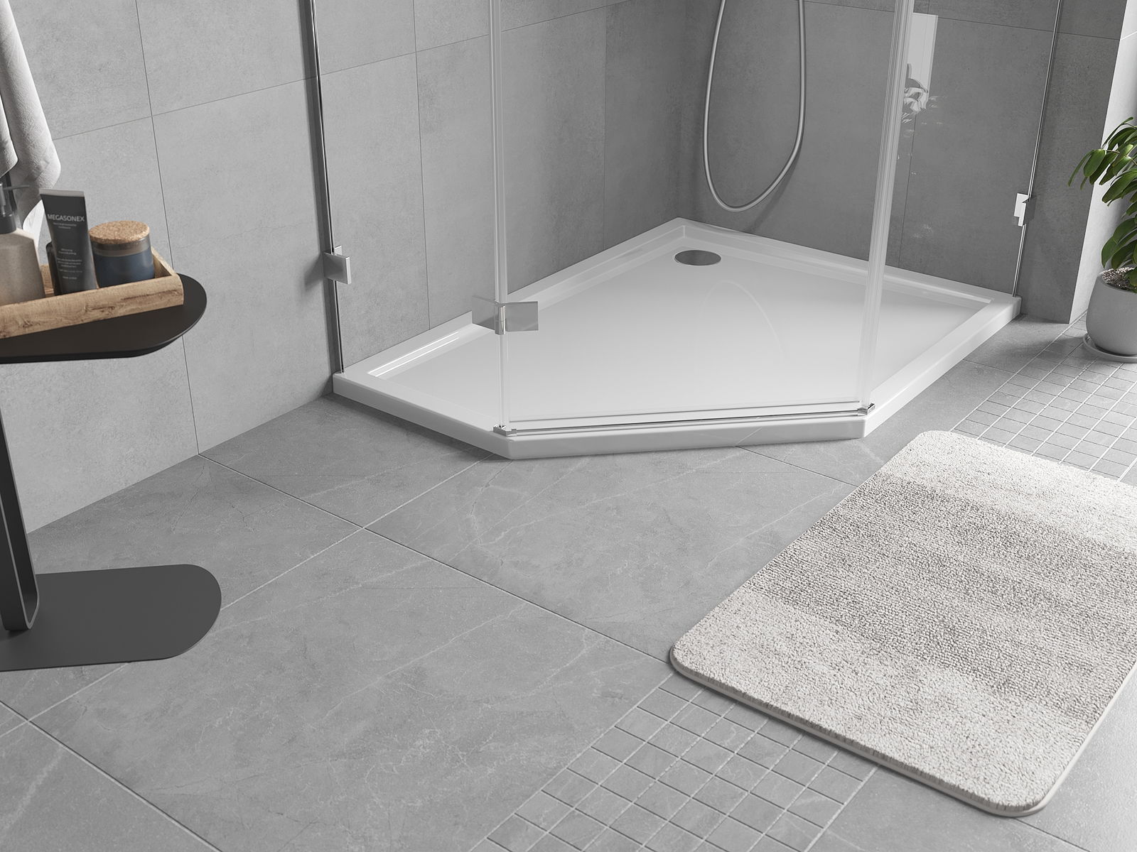 Brodzik został zaprojektowany w taki sposób, by woda mogła swobodnie spływać w kierunku odpływu. Zapewnia szybkie i efektywne odprowadzanie wody z powierzchni brodzika, zapobiegając powstawianiu kałuż i zalewaniu łazienki.