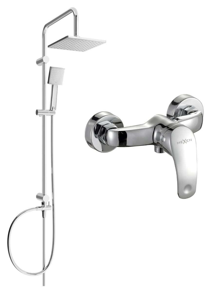 Mexen Tord zestaw prysznicowy natynkowy z deszczownicą i baterią prysznicową Fabia, chrom - 746540200-00