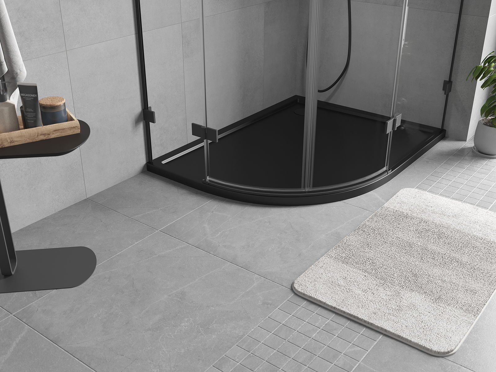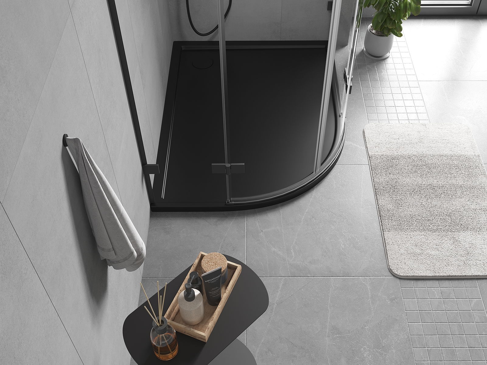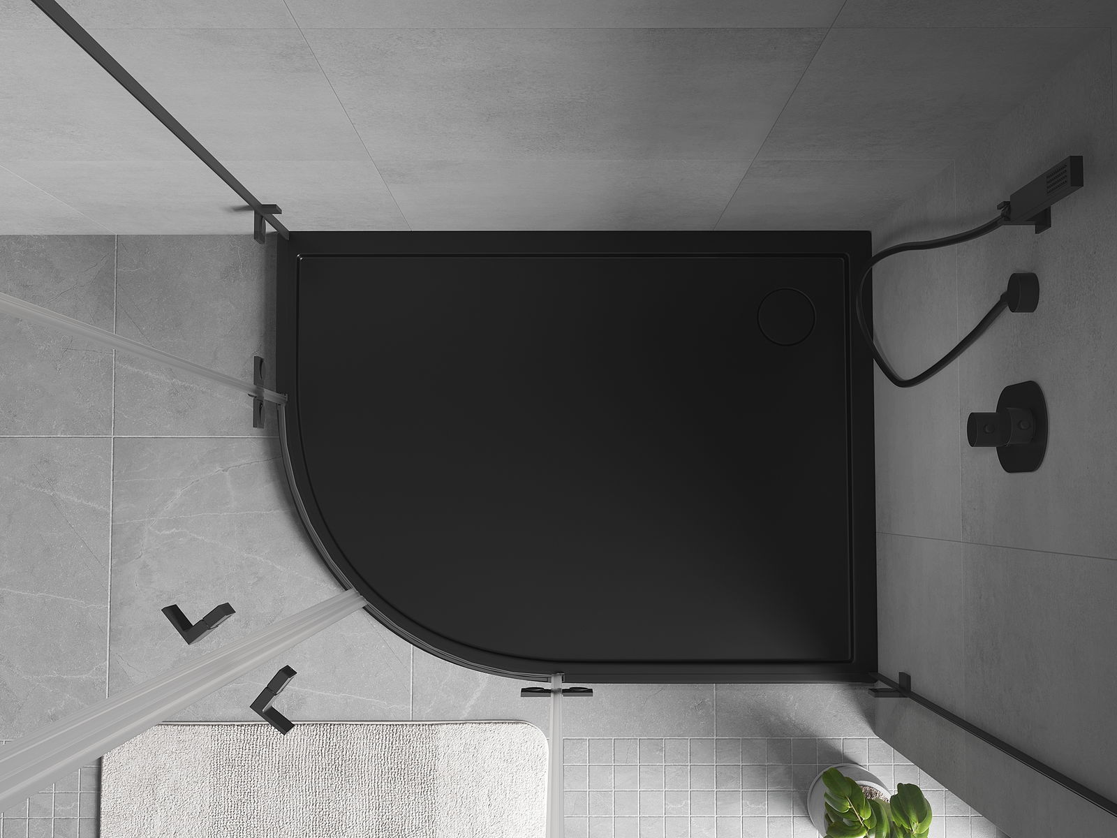 Mexen Flow brodzik półokrągły asymetryczny slim prawy 80 x 100 cm, czarny mat - 46Q708010R