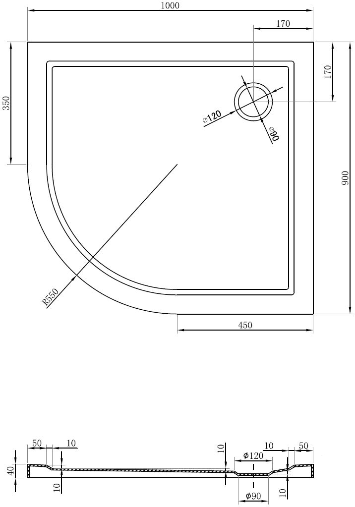 Średnica odpływu: 90 mm