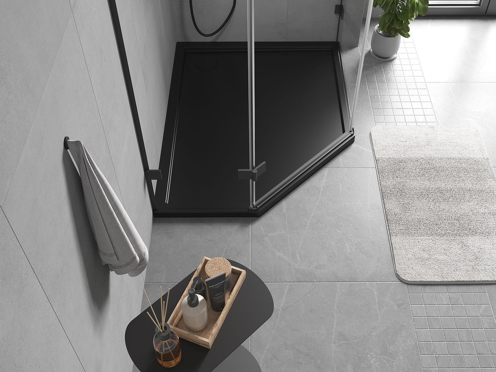Mexen Flow brodzik pięciokątny slim prawy 90 x 100 cm, czarny mat - 46P709010R