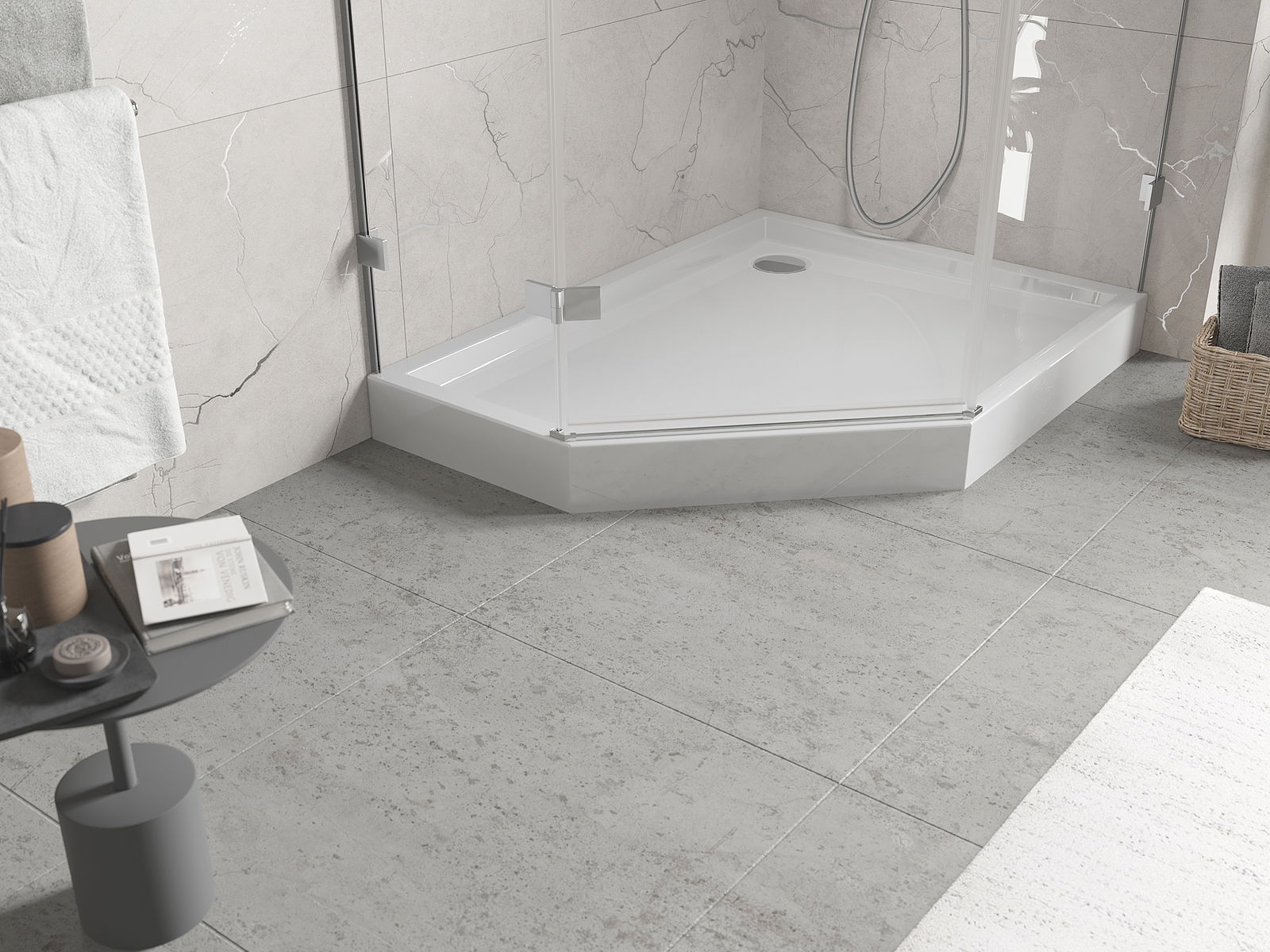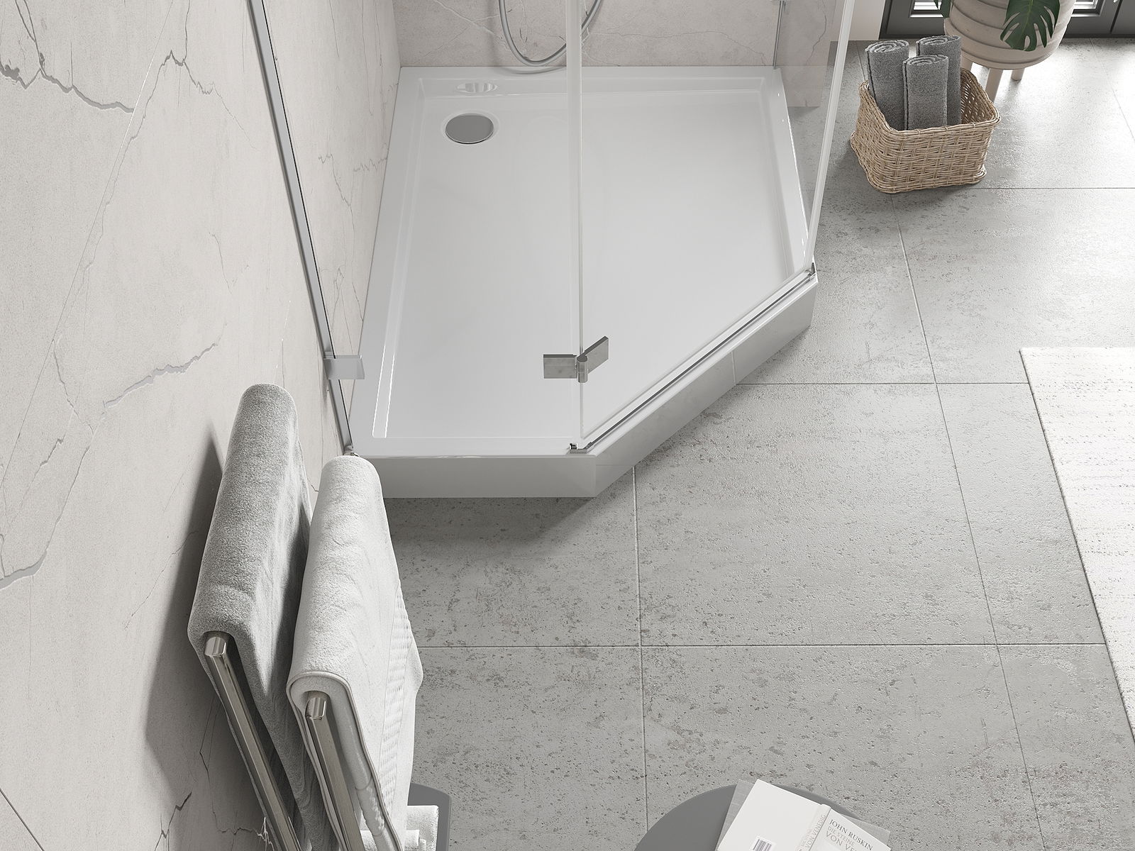 Brodzik został zaprojektowany w taki sposób, by woda mogła swobodnie spływać w kierunku odpływu. Zapewnia szybkie i efektywne odprowadzanie wody z powierzchni brodzika, zapobiegając powstawianiu kałuż i zalewaniu łazienki.
