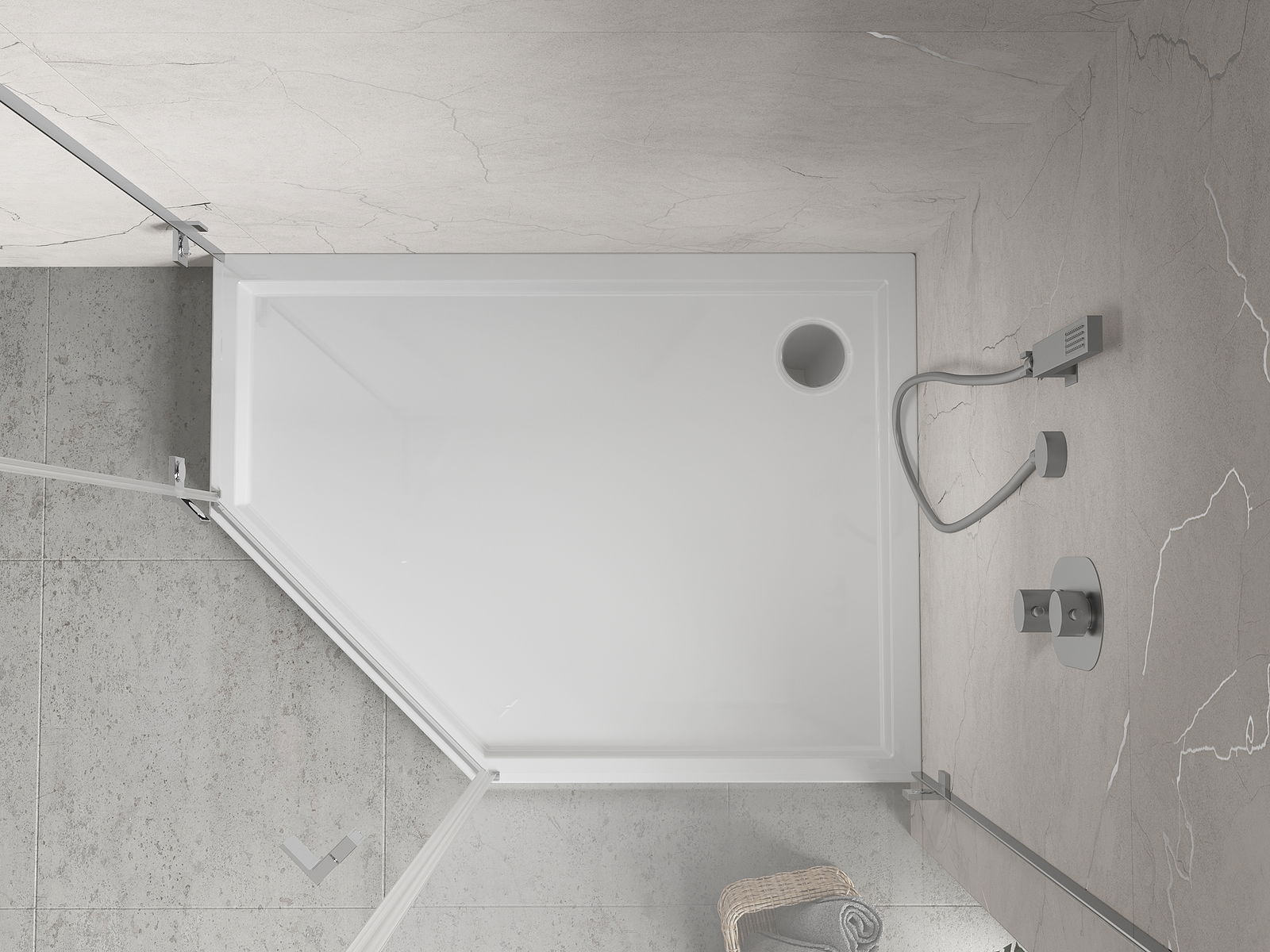 Mexen Flow+ brodzik pięciokątny prawy 80 x 90 cm, biały połysk - 46P108090RH