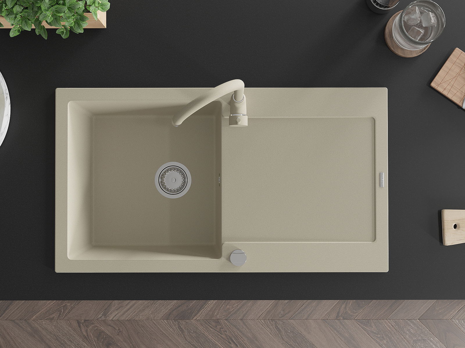Zlewozmywak został wykonany z wysokiej jakości granitu. Stanowi eleganckie, a przede wszystkim praktyczne uzupełnienie każdej kuchni, niezależnie od jej stylu. Wysoka jakość oraz trwałość granitu zapewniają wieloletnie użytkowanie.