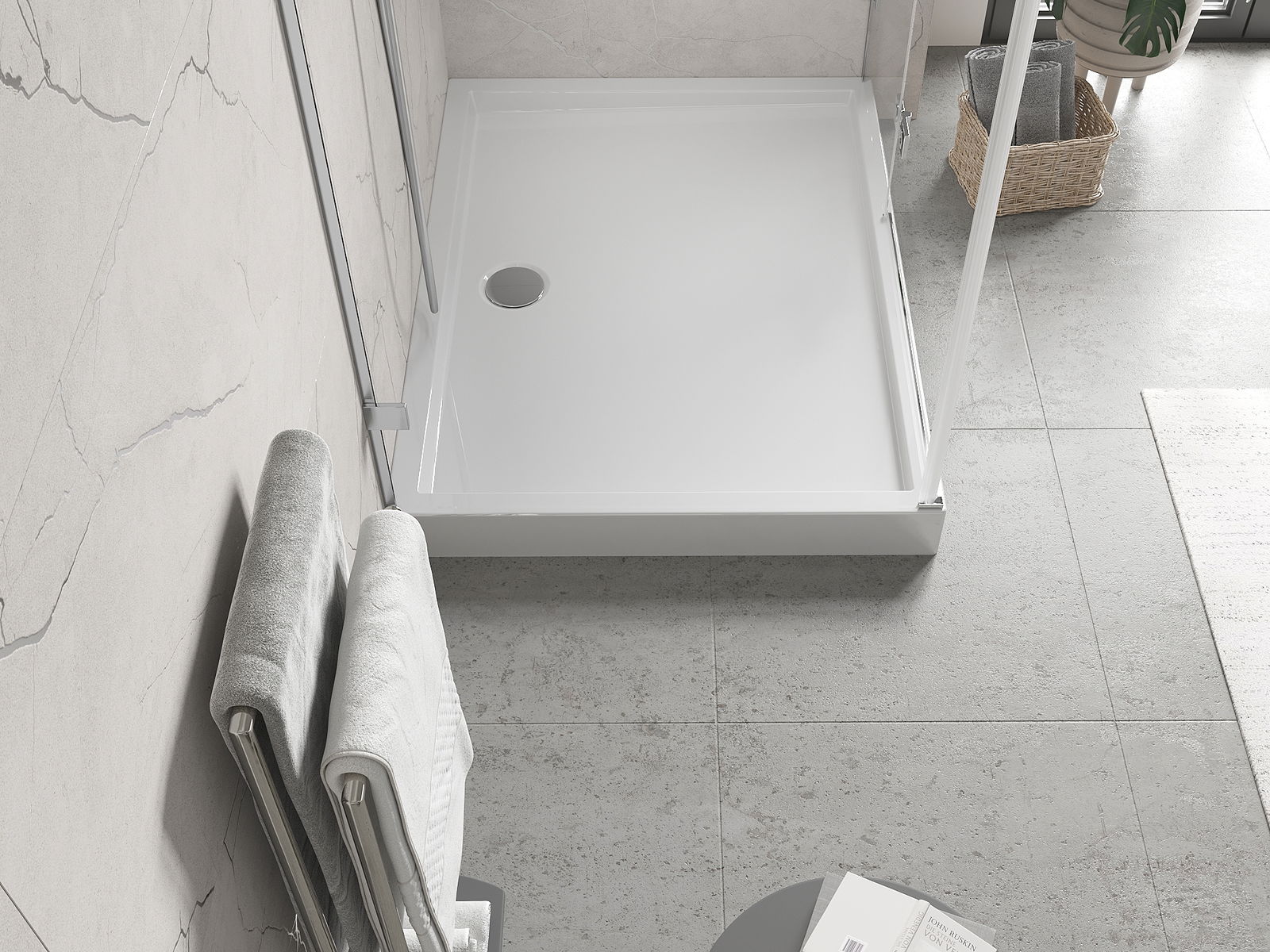 Brodzik został zaprojektowany w taki sposób, by woda mogła swobodnie spływać w kierunku odpływu. Zapewnia szybkie i efektywne odprowadzanie wody z powierzchni brodzika, zapobiegając powstawianiu kałuż i zalewaniu łazienki.