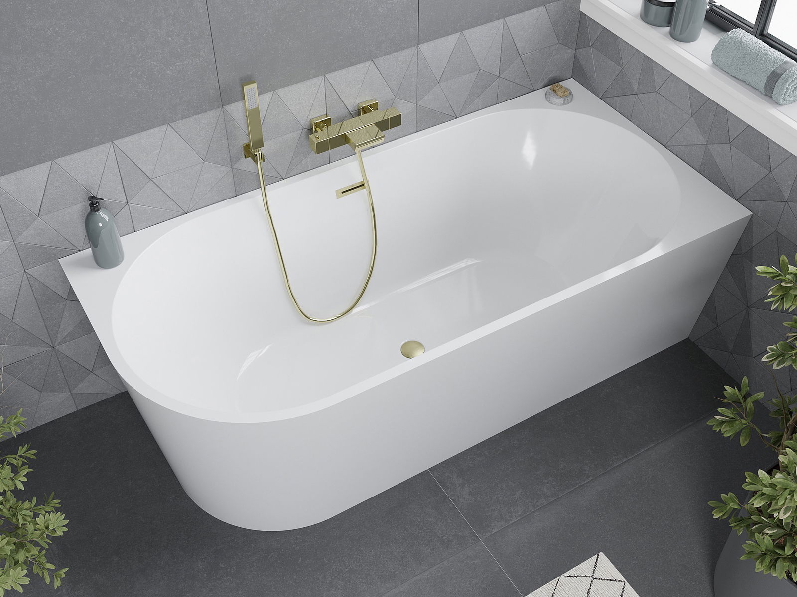 Mexen Mia wanna wolnostojąca narożna prawa 140 x 75 cm, biała, przelew złoty szczotkowany - 52691407500P-55