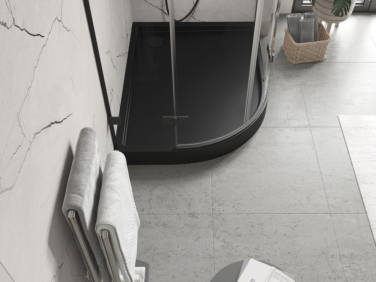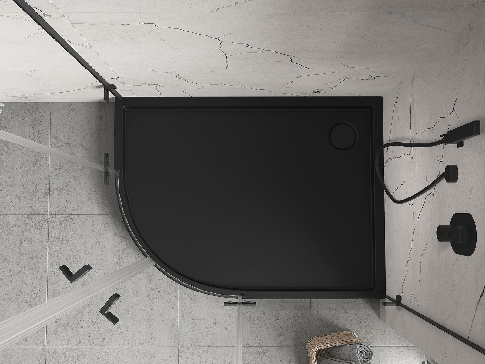 Mexen Flow+ brodzik półokrągły asymetryczny prawy 80 x 90 cm, czarny mat - 46Q708090RH