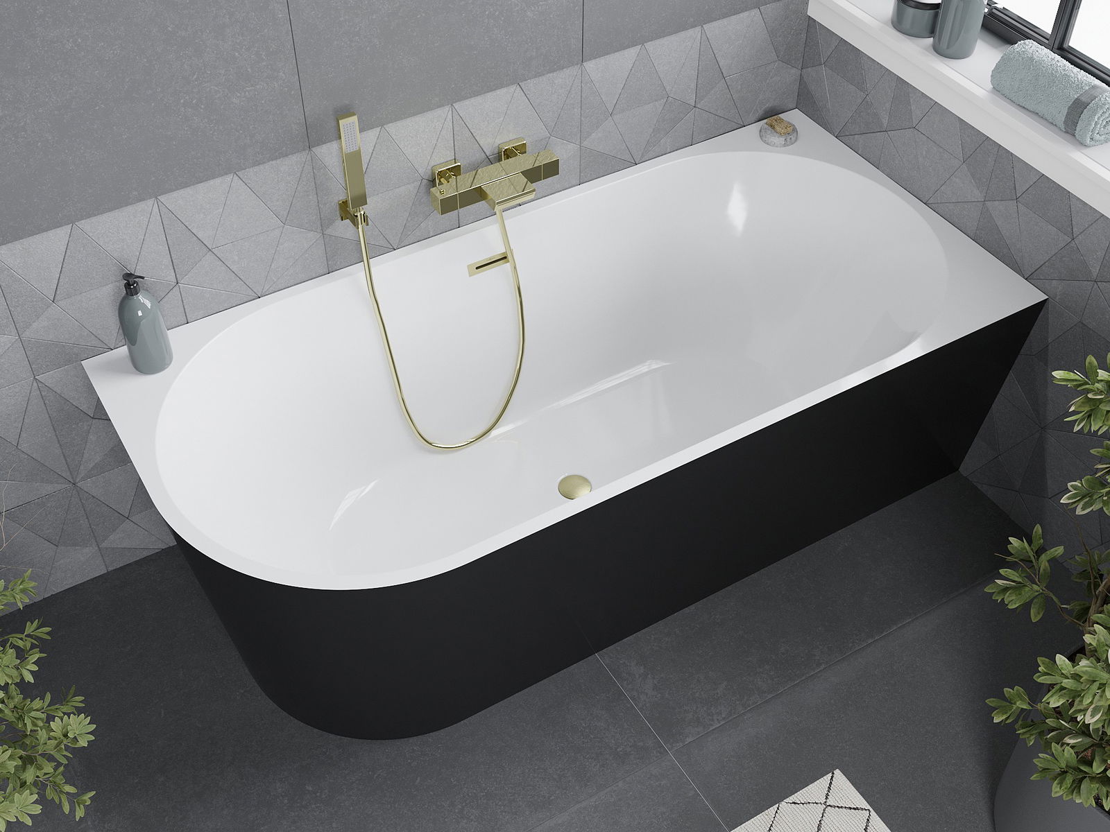 Mexen Mia wanna wolnostojąca narożna prawa 140 x 75 cm, biała/czarna, przelew złoty szczotkowany - 52691407575P-55