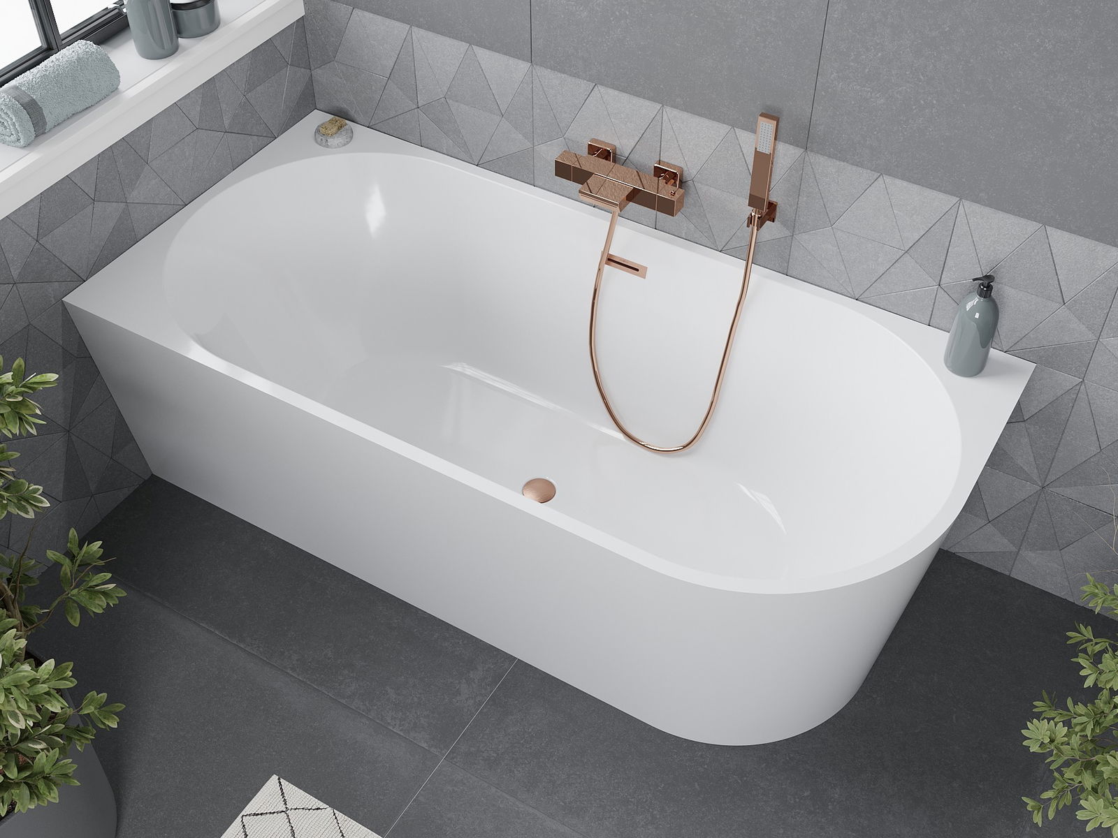 Mexen Mia wanna wolnostojąca narożna lewa 140 x 75 cm, biała, przelew miedź szczotkowana - 52691407500L-65