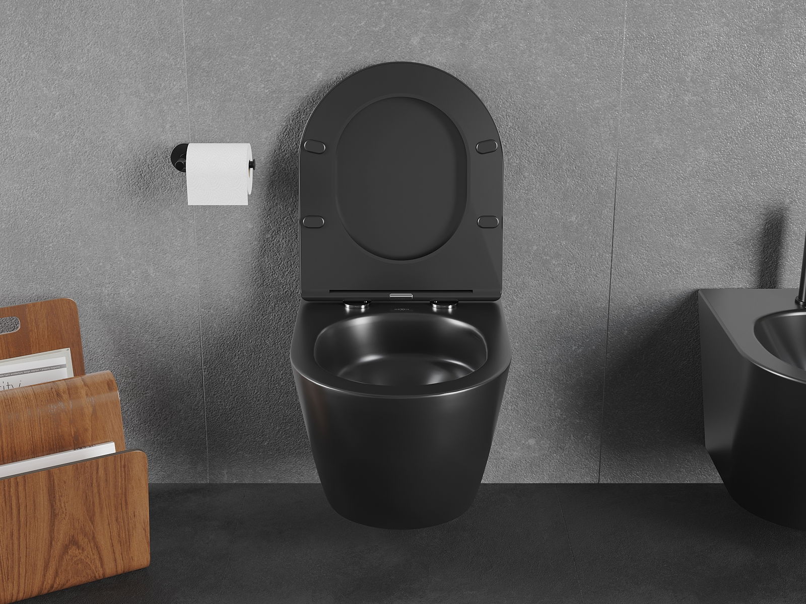 Cienka deska o wyjątkowo ergonomicznym kształcie i niezwykle smukłym wyglądzie. Konstrukcja idealnie dopasowuje się do nowoczesnego wnętrza łazienki, dając wrażenie lekkości. Doskonały wybór do minimalistycznych aranżacji.