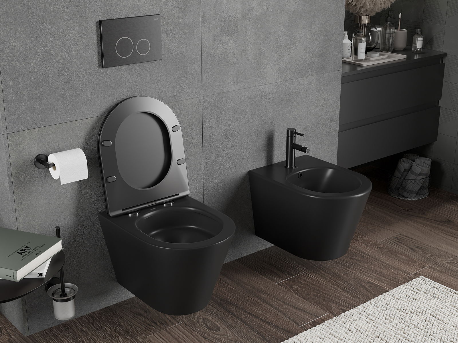 Cienka deska o wyjątkowo ergonomicznym kształcie i niezwykle smukłym wyglądzie. Konstrukcja idealnie dopasowuje się do nowoczesnego wnętrza łazienki, dając wrażenie lekkości. Doskonały wybór do minimalistycznych aranżacji.