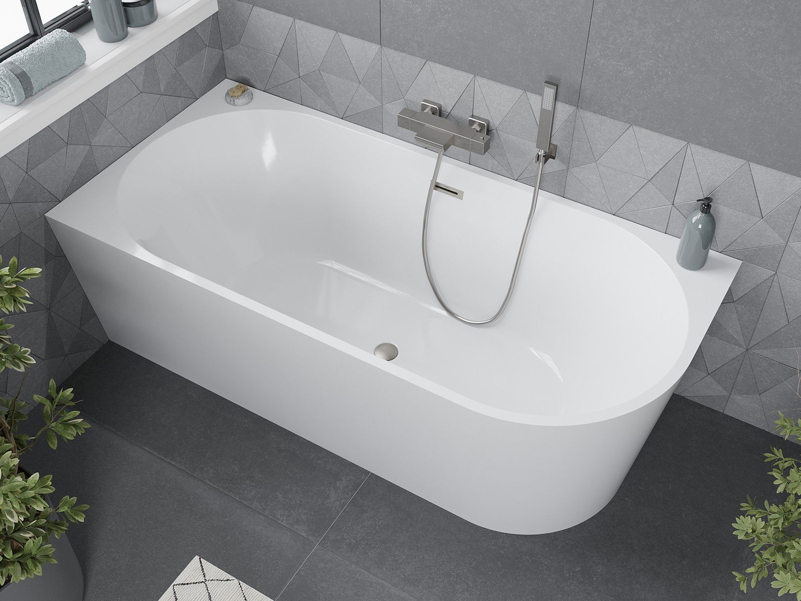 Mexen Mia wanna wolnostojąca narożna lewa 160 x 80 cm, biała, przelew nikiel szczotkowany - 52691608000L-97