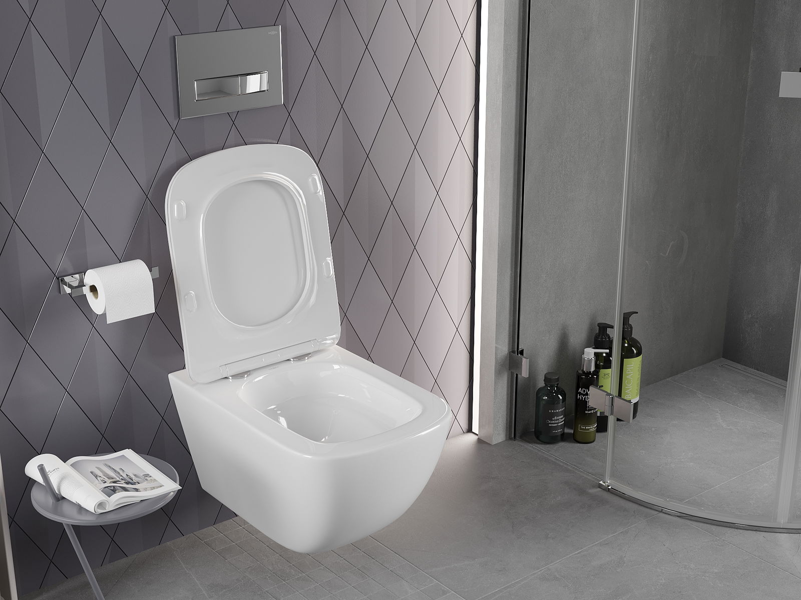 Cienka deska o wyjątkowo ergonomicznym kształcie i niezwykle smukłym wyglądzie. Konstrukcja idealnie dopasowuje się do nowoczesnego wnętrza łazienki, dając wrażenie lekkości. Doskonały wybór do minimalistycznych aranżacji.