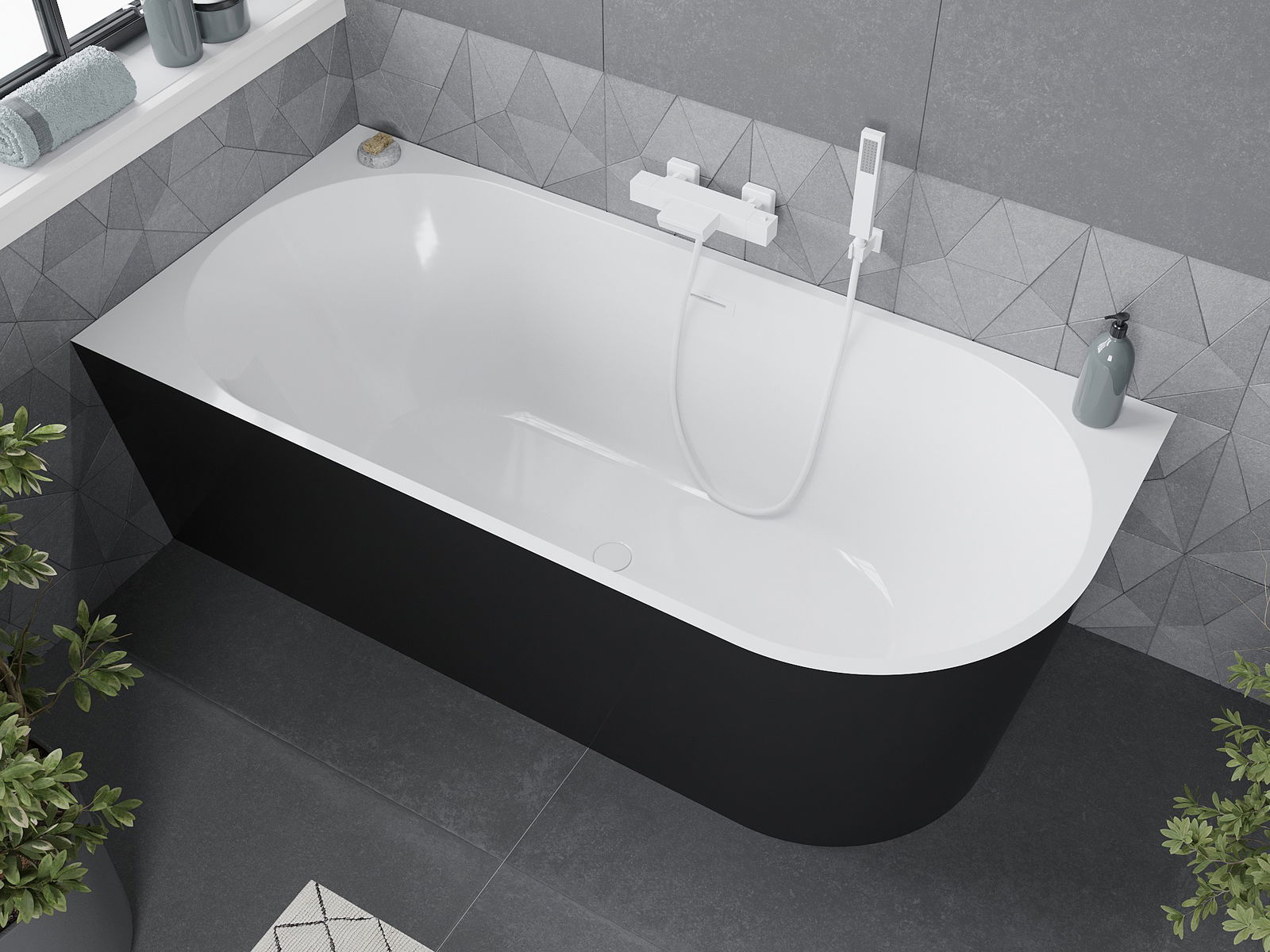Mexen Mia wanna wolnostojąca narożna lewa 160 x 80 cm, biała/czarna, przelew biały - 52691608075L-20