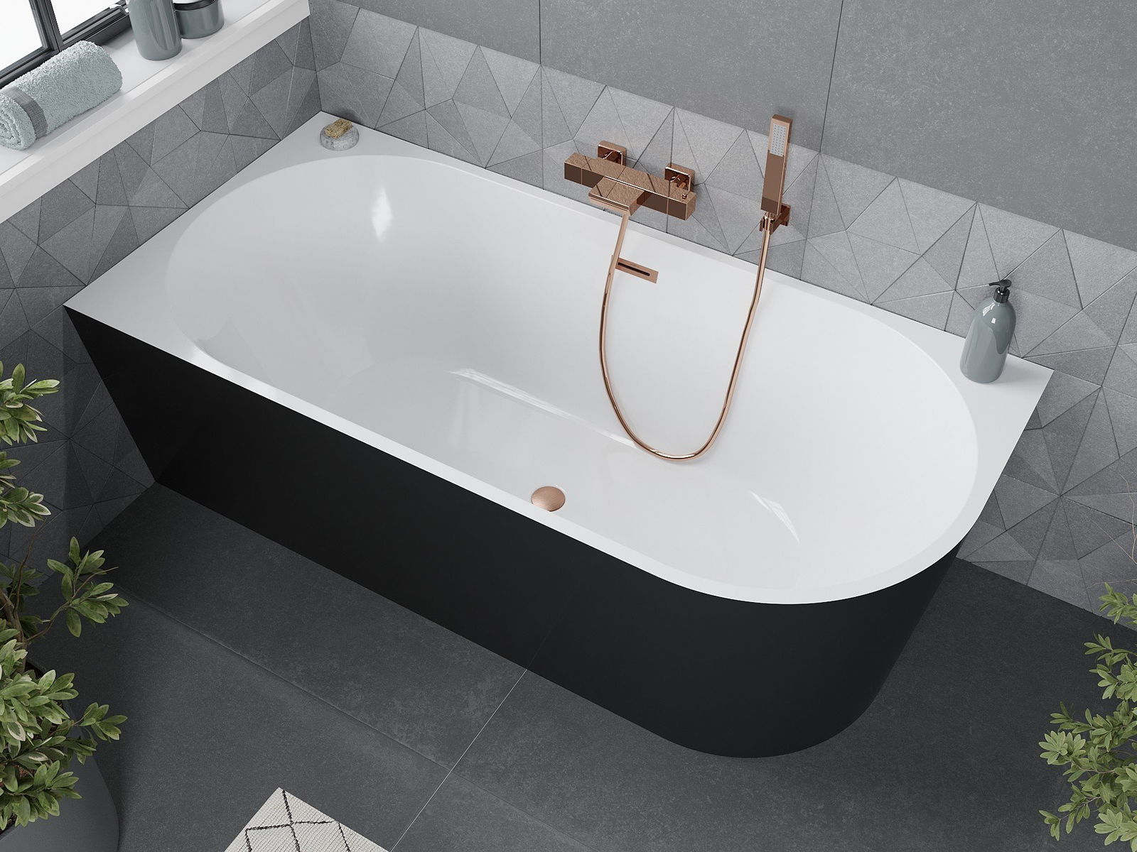 Mexen Mia wanna wolnostojąca narożna lewa 160 x 80 cm, biała/czarna, przelew miedź szczotkowana - 52691608075L-65