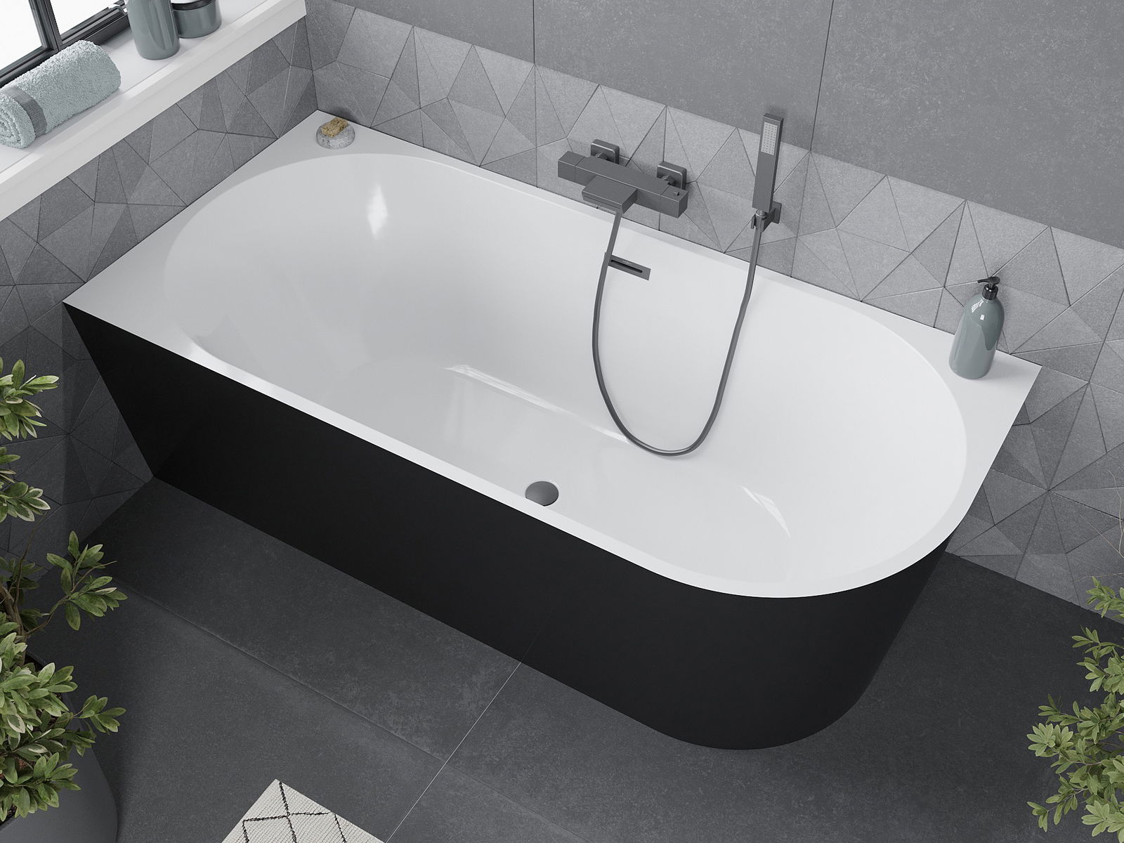 Mexen Mia wanna wolnostojąca narożna lewa 160 x 80 cm, biała/czarna, przelew gun metal - 52691608075L-95