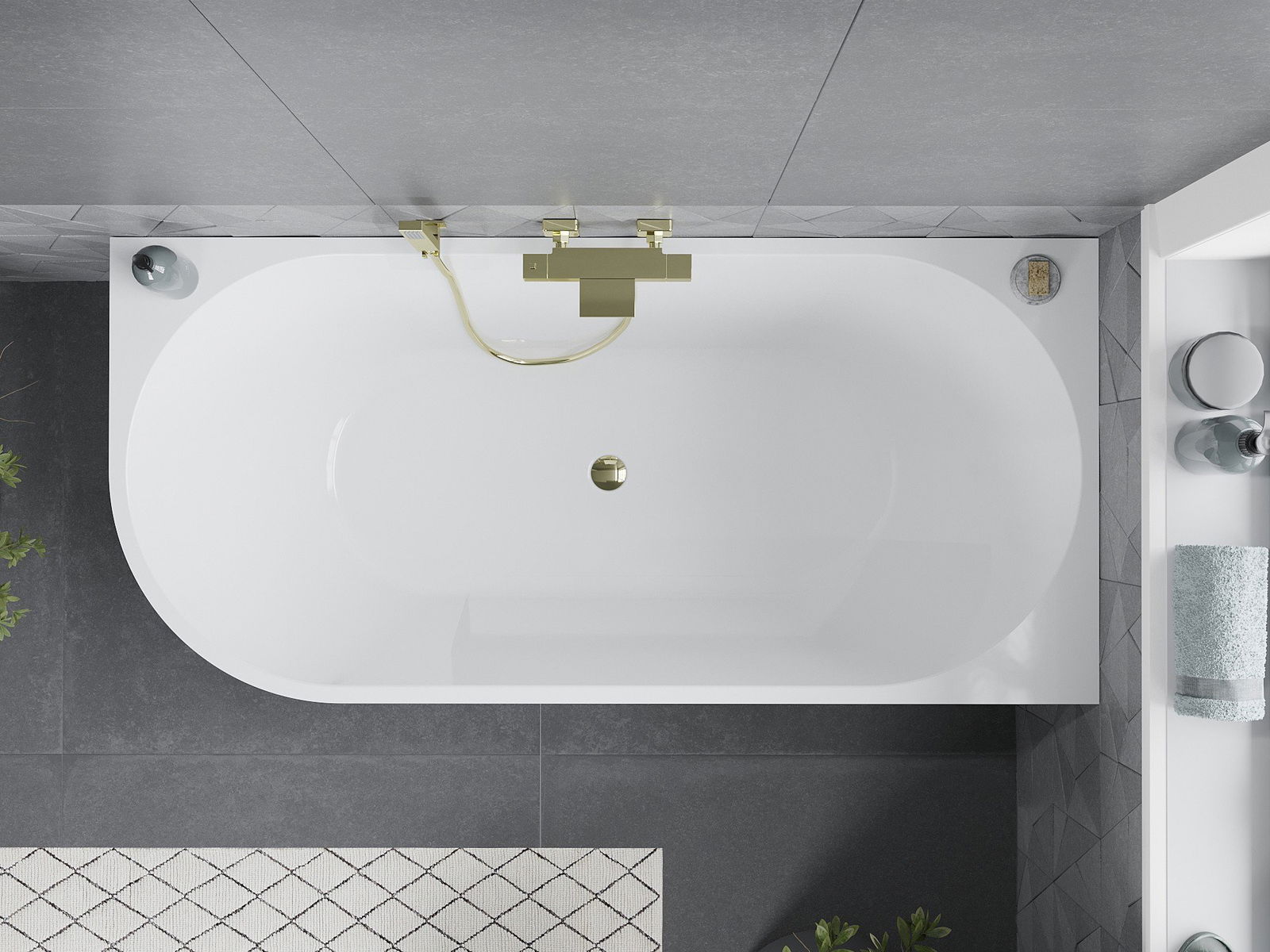 Mexen Mia wanna wolnostojąca narożna prawa 160 x 80 cm, biała, przelew złoty - 52691608000P-50