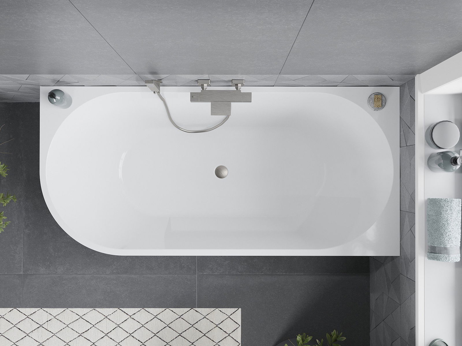 Mexen Mia wanna wolnostojąca narożna prawa 160 x 80 cm, biała, przelew nikiel szczotkowany - 52691608000P-97